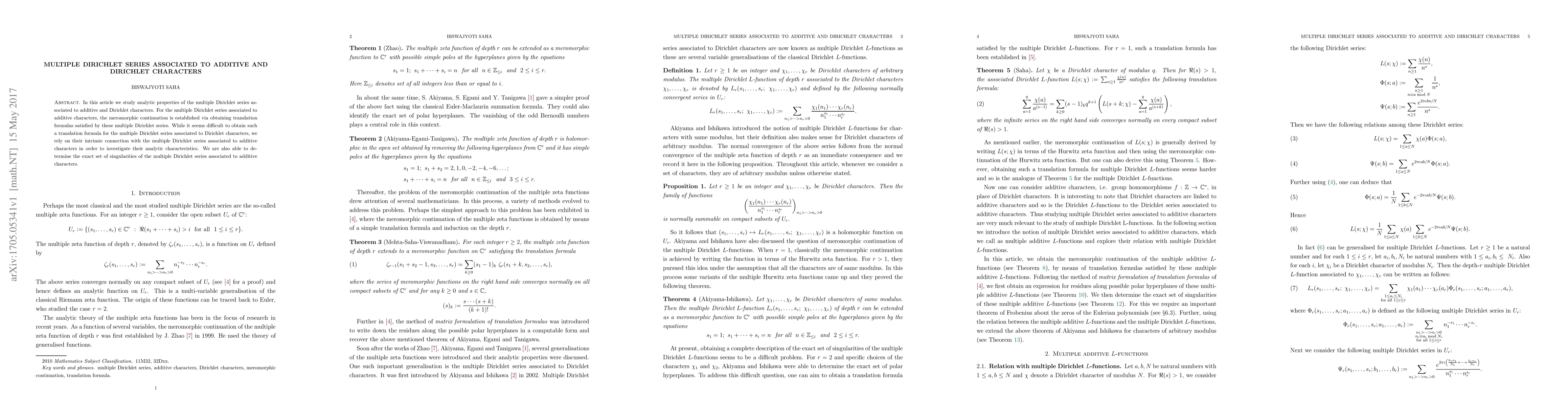 This paper investigates the analytic properties of multiple Dirichlet series tied to additive and Dirichlet characters, establishing meromorphic continuation for additive characters through translation formulas. For Dirichlet characters, it leverages connections to additive characters to explore their characteristics and identifies the precise singularity set of the associated additive series.