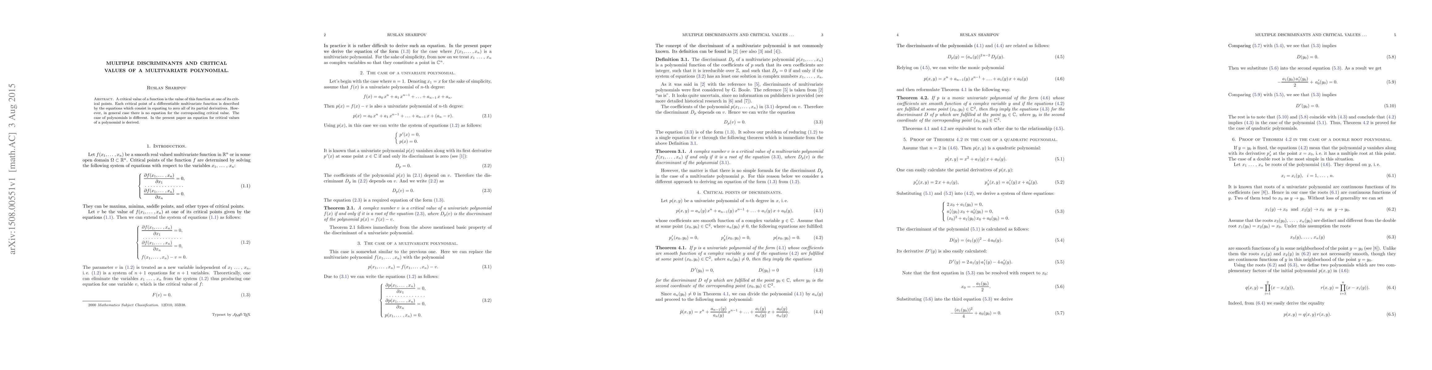 A critical value of a function is the value of this function at one of its critical points. Each critical point of a differentiable multivariate function is described by the equations which consist in equating to zero all of its partial derivatives. However, in general case there is no equation for the corresponding critical value. The case of polynomials is different. In the present paper an equation for critical values of a polynomial is derived.