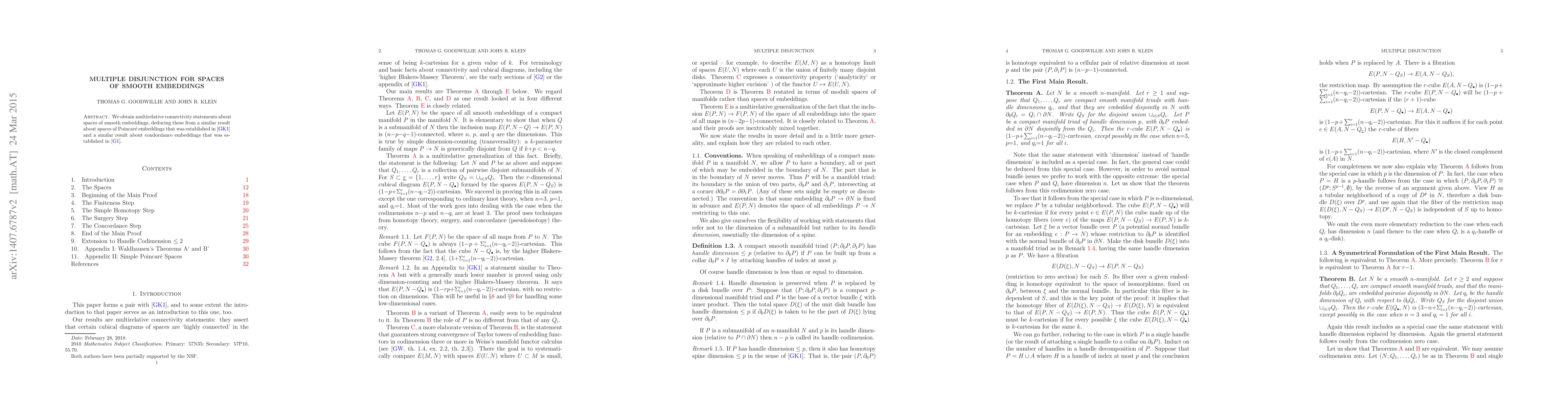Summary: The paper establishes multirelative connectivity for spaces of smooth embeddings, deriving these results from previously established connectivity statements for spaces of Poincare embeddings. This builds on foundational work from a prior publication.