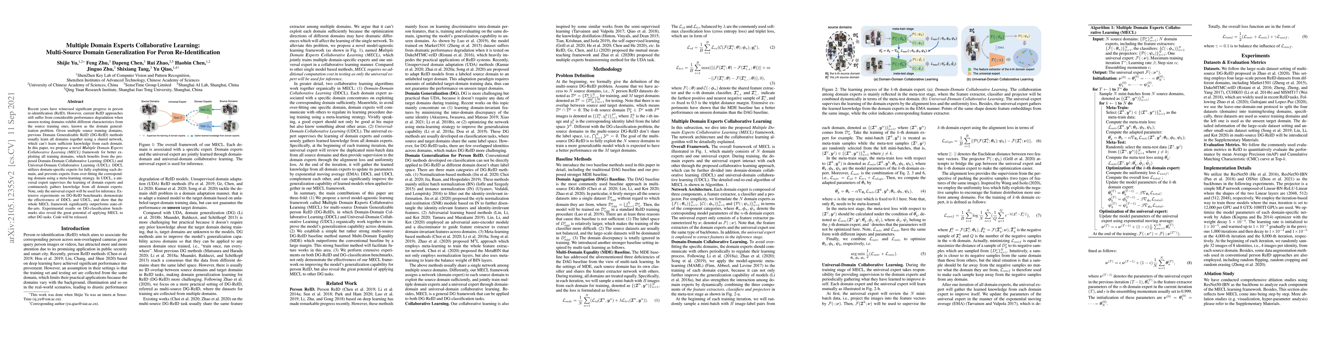 This paper proposes a Multiple Domain Experts Collaborative Learning (MECL) framework to tackle the domain generalization problem in person re-identification. The framework employs Domain-Domain Collaborative Learning (DDCL) and Universal-Domain Collaborative Learning (UDCL) to fully exploit multiple training domains and prevent overfitting, ultimately achieving superior performance compared to state-of-the-art methods.