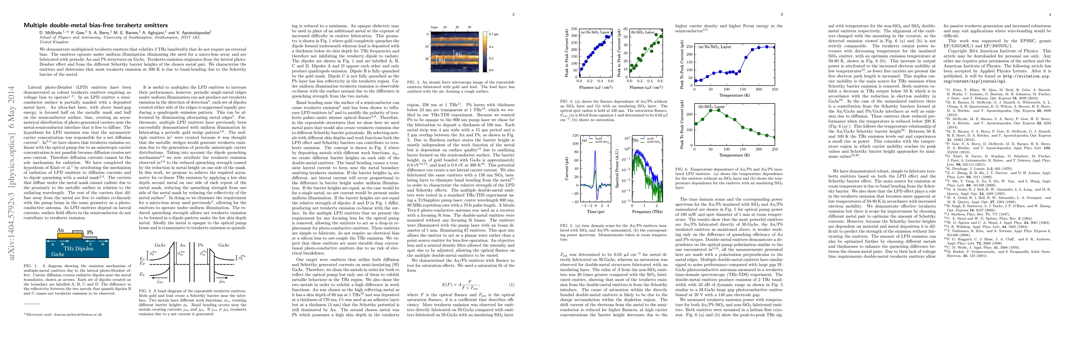 Researchers create a new type of terahertz emitter that doesn't need an external bias, using a special metal structure on a semiconductor material. The emitters can emit multiple frequencies simultaneously with high accuracy.