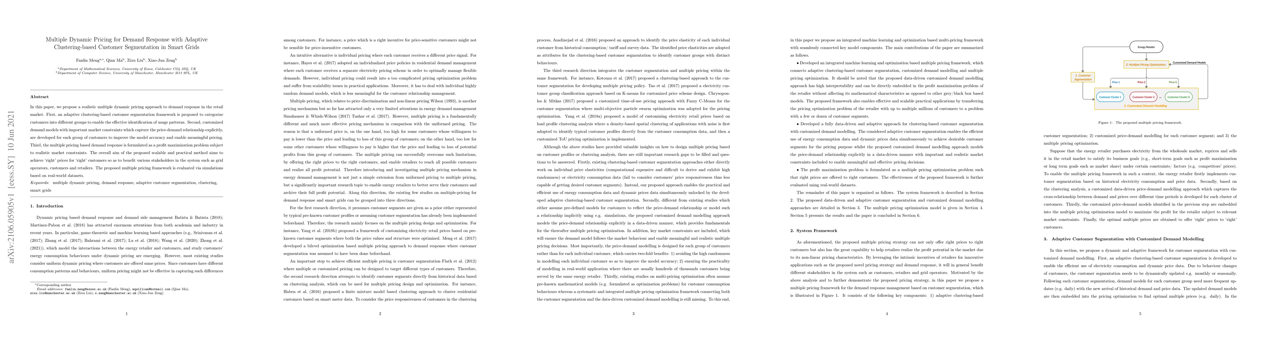 In this paper, we propose a realistic multiple dynamic pricing approach to demand response in the retail market. First, an adaptive clustering-based customer segmentation framework is proposed to categorize customers into different groups to enable the effective identification of usage patterns. Second, customized demand models with important market constraints which capture the price-demand relationship explicitly, are developed for each group of customers to improve the model accuracy and enable meaningful pricing. Third, the multiple pricing based demand response is formulated as a profit maximization problem subject to realistic market constraints. The overall aim of the proposed scalable and practical method aims to achieve 'right' prices for 'right' customers so as to benefit various stakeholders in the system such as grid operators, customers and retailers. The proposed multiple pricing framework is evaluated via simulations based on real-world datasets.