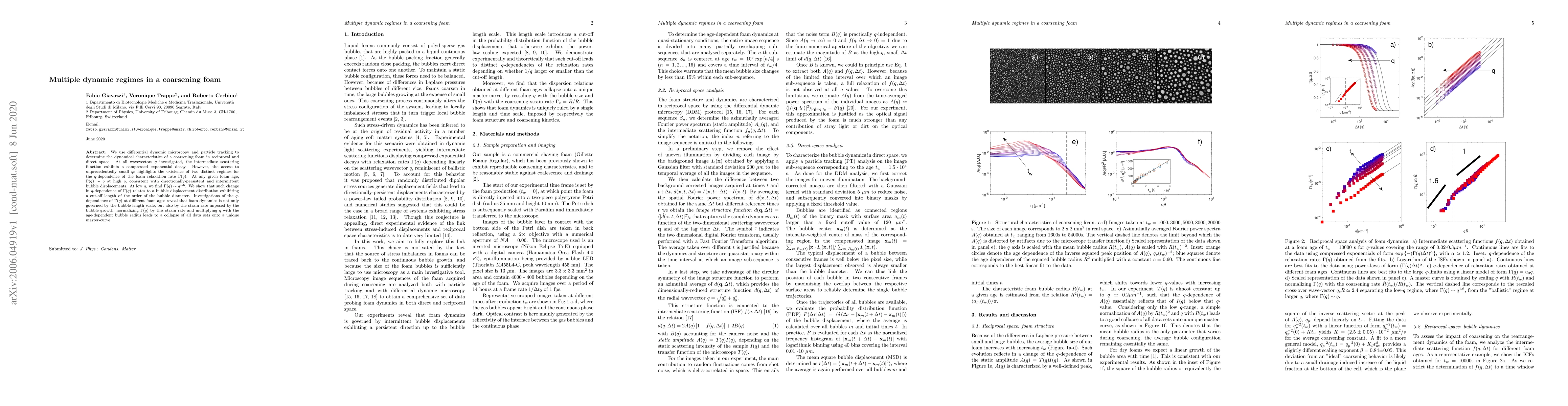 This study reveals two distinct dynamic regimes in a coarsening foam, identified through differential dynamic microscopy and particle tracking. The foam relaxation rate $\Gamma (q)$ follows $\Gamma (q)\sim q$ at high $q$ and $\Gamma (q) \sim q^{1.6}$ at low $q$, indicating different bubble displacement behaviors, with the transition linked to a bubble diameter-scale cutoff.
