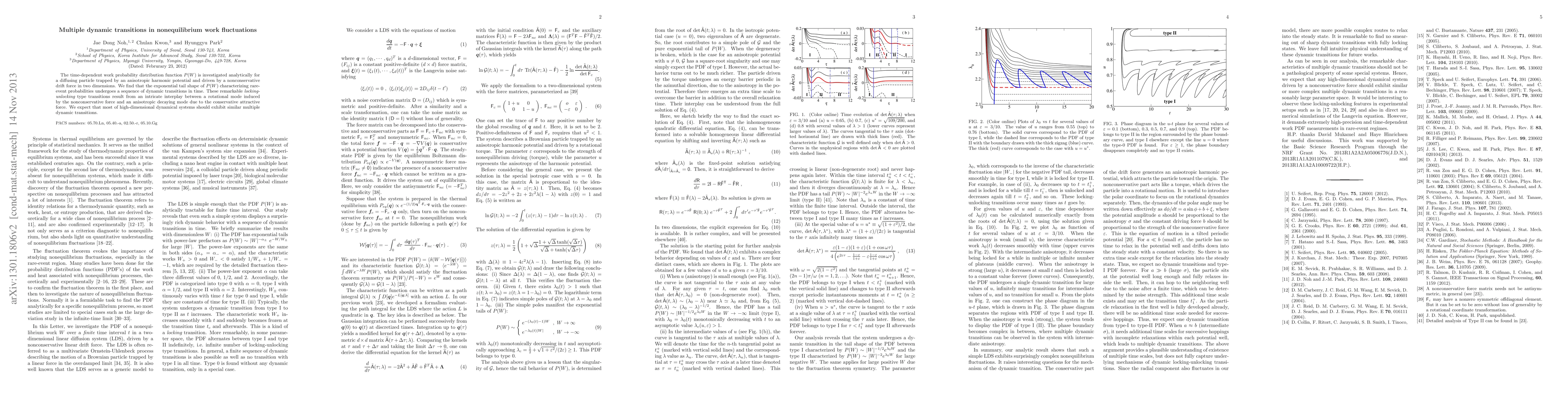 The time-dependent work probability distribution function $P(W)$ is investigated analytically for a diffusing particle trapped by an anisotropic harmonic potential and driven by a nonconservative drift force in two dimensions. We find that the exponential tail shape of $P(W)$ characterizing rare-event probabilities undergoes a sequence of dynamic transitions in time. These remarkable locking-unlocking type transitions result from an intricate interplay between a rotational mode induced by the nonconservative force and an anisotropic decaying mode due to the conservative attractive force. We expect that most of high-dimensional dynamical systems should exhibit similar multiple dynamic transitions.