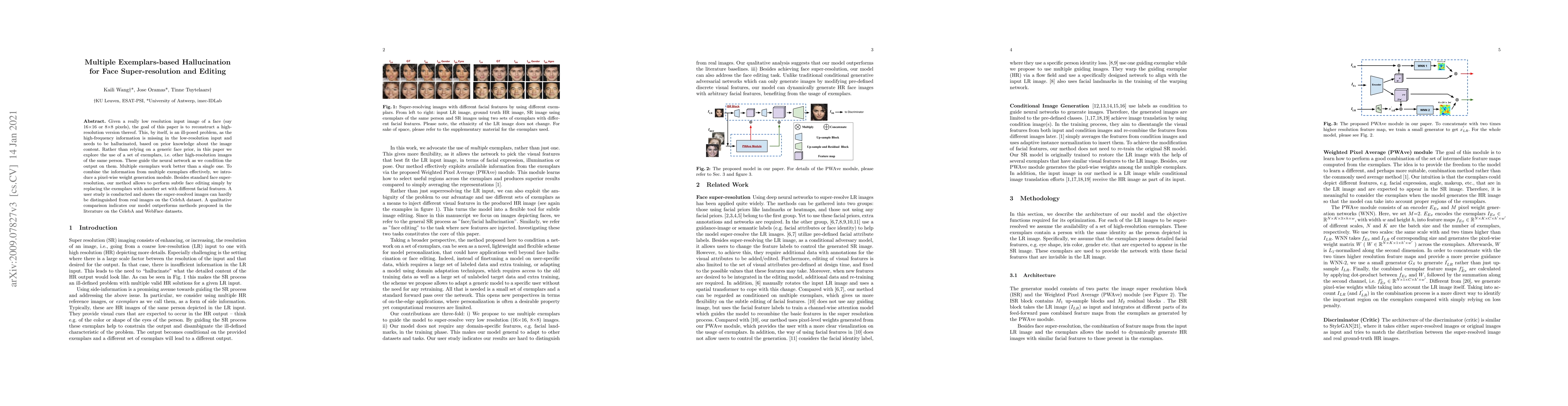 This paper proposes a method for face super-resolution and editing using multiple exemplars to hallucinate high-frequency details from low-resolution inputs. It introduces a pixel-wise weight generation module to combine exemplars effectively, outperforming single exemplar methods and achieving results indistinguishable from real images.