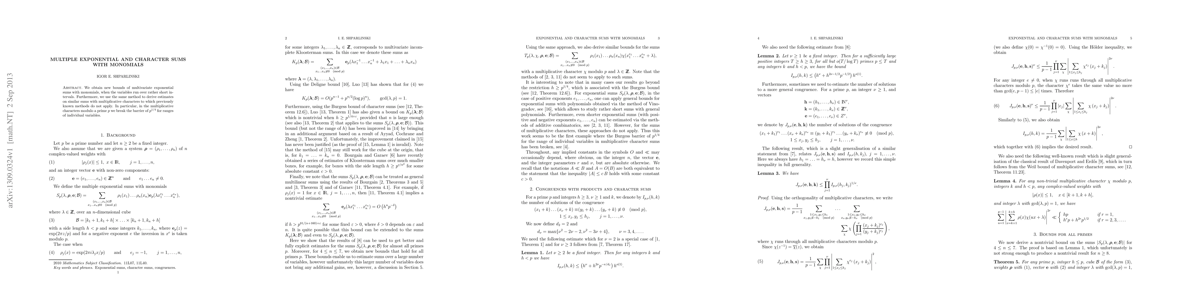 This paper establishes new bounds for multivariate exponential sums with monomials over short intervals and extends these bounds to sums with multiplicative characters, surpassing previous limits of $p^{1/4}$ for characters modulo a prime $p$.
