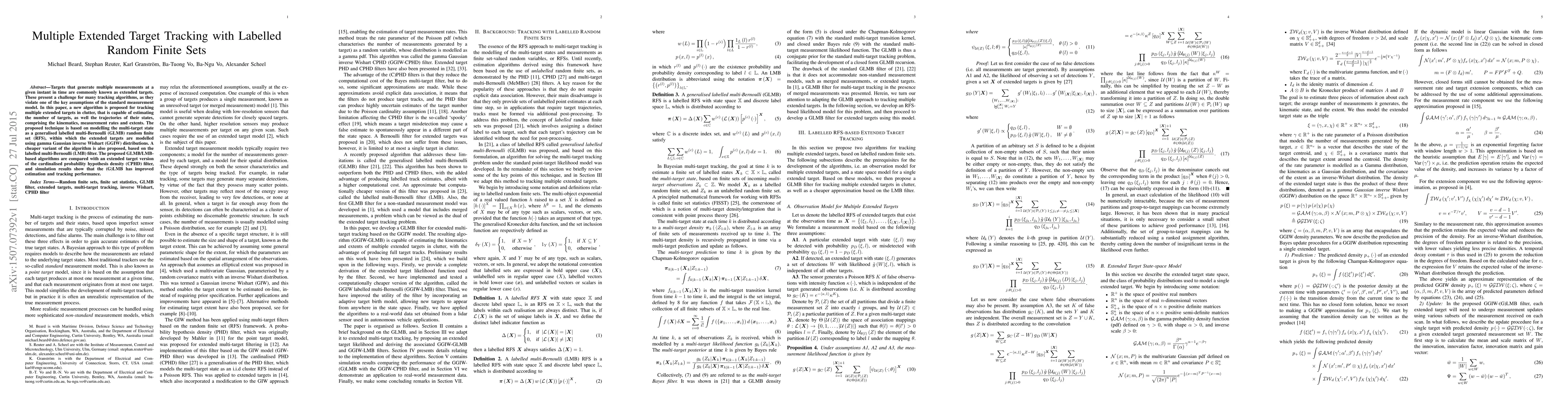 This paper proposes new algorithms based on generalised labelled multi-Bernoulli (GLMB) and labelled multi-Bernoulli (LMB) filters for tracking multiple extended targets in clutter, showing improved performance over the extended target version of the cardinalised probability hypothesis density (CPHD) filter in simulations.