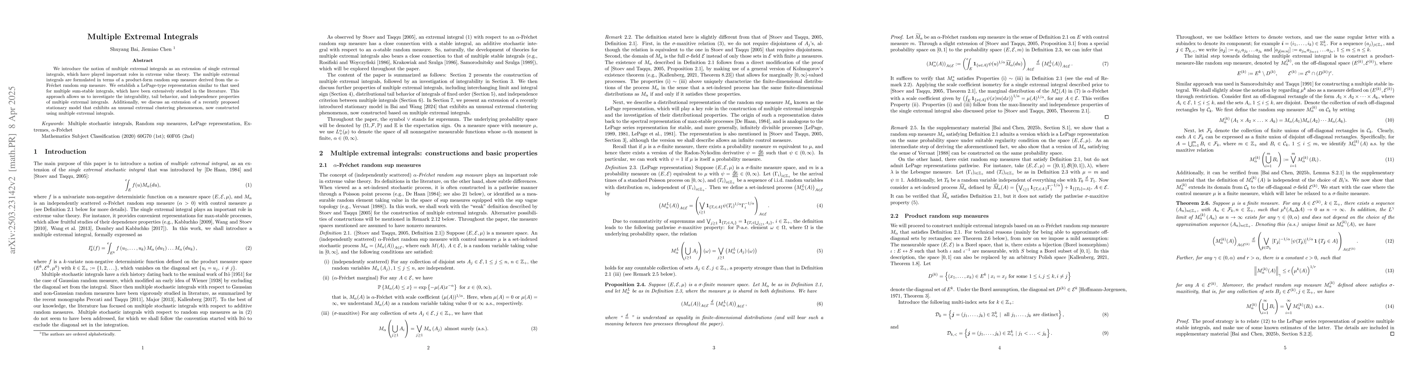 This research is significant as it advances extreme value theory by extending single extremal integrals to multiple extremal integrals, allowing for a deeper understanding of integrability, tail behavior, and independence properties. It also provides an extended model for studying unusual extremal clustering phenomena.