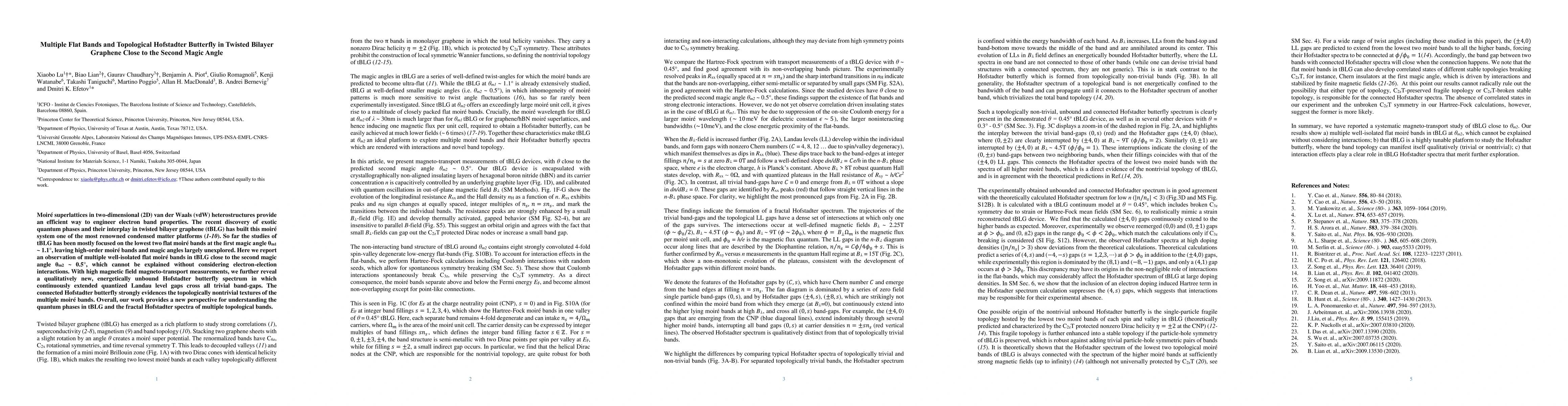 This paper reports the observation of multiple isolated flat bands in twisted bilayer graphene near the second magic angle, revealing electron-electron interactions' significance. High magnetic field transport measurements uncover a topological Hofstadter butterfly spectrum, providing evidence for the nontrivial topology of these bands.