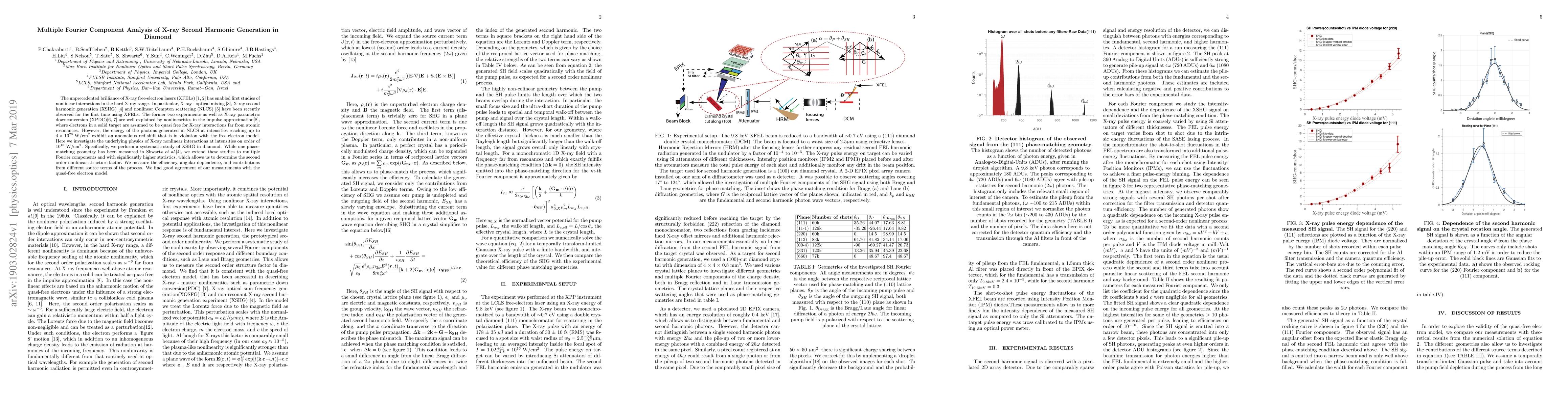 The unprecedented brilliance of X-ray free-electron lasers (XFELs) [1, 2] has enabled first studies of nonlinear interactions in the hard X-ray range. In particular, X-ray-optical mixing [3], X-ray second harmonic generation (XSHG) [4] and nonlinear Compton scattering (NLCS) [5] have been recently observed for the first time using XFELs. The former two experiments as well as X-ray parametric downconversion (XPDC)[6, 7] are well explained by nonlinearities in the impulse approximation[8], where electrons in a solid target are assumed to be quasi free for X-ray interactions far from atomic resonances. However, the energy of the photons generated in NLCS at intensities reaching up to 4 x 1020 W/cm2 exhibit an anomalous red-shift that is in violation with the free-electron model. Here we investigate the underlying physics of X-ray nonlinear interactions at intensities on order of 1016 W/cm2. Specifically, we perform a systematic study of XSHG in diamond. While one phase-matching geometry has been measured in Shwartz et al.[4], we extend these studies to multiple Fourier components and with significantly higher statistics, which allows us to determine the second order nonlinear structure factor. We measure the efficiency, angular dependence, and contributions from different source terms of the process. We find good agreement of our measurements with the quasi-free electron model.