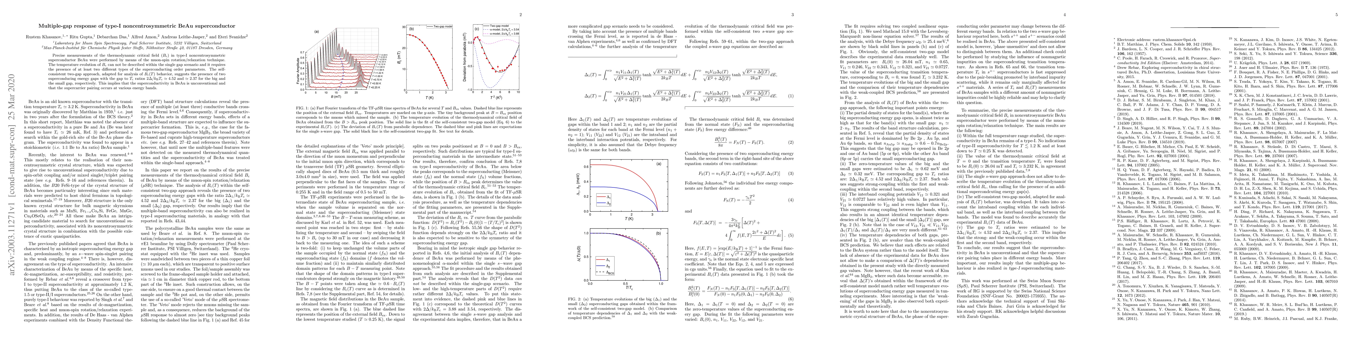 This paper reports on the multiple-gap response in the type-I noncentrosymmetric superconductor BeAu, revealing the presence of at least two distinct superconducting energy gaps through precise thermodynamic critical field measurements. The findings suggest unconventional superconductivity with pairing occurring across different energy bands.