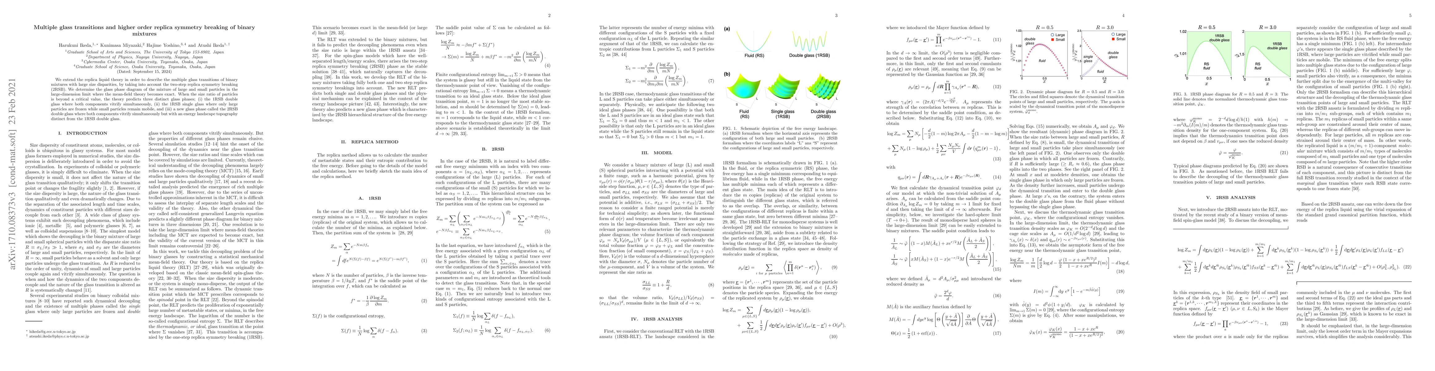 This paper extends replica liquid theory to explain multiple glass transitions in binary mixtures with significant size disparities, identifying three distinct glass phases through two-step replica symmetry breaking (2RSB) in the large-dimension limit. The phases include simultaneous vitrification in both components, single component vitrification, and a novel 2RSB double glass phase.