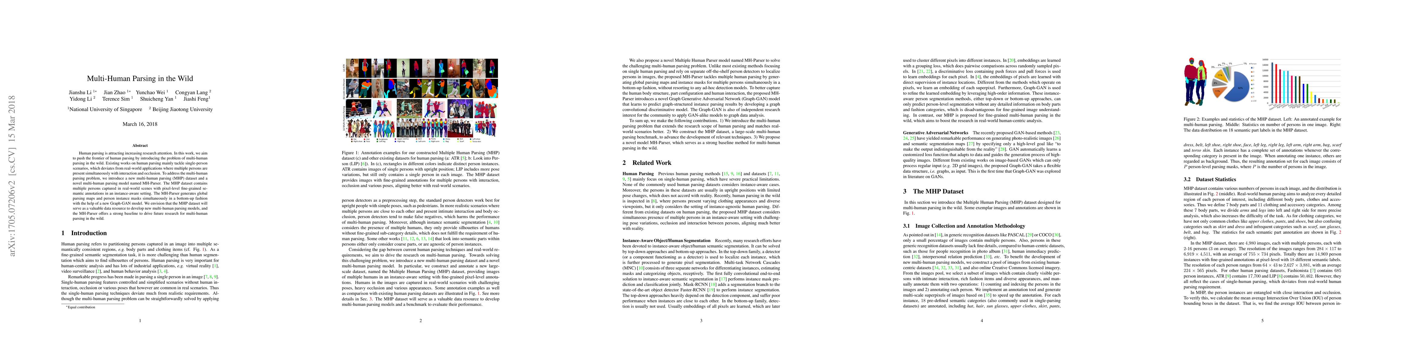 This paper introduces a new dataset and model for multi-human parsing in real-world scenarios, addressing the challenge of parsing multiple interacting and occluding individuals. The MH-Parser model, utilizing a Graph-GAN, generates instance-aware semantic maps and masks, providing a strong baseline for future research.