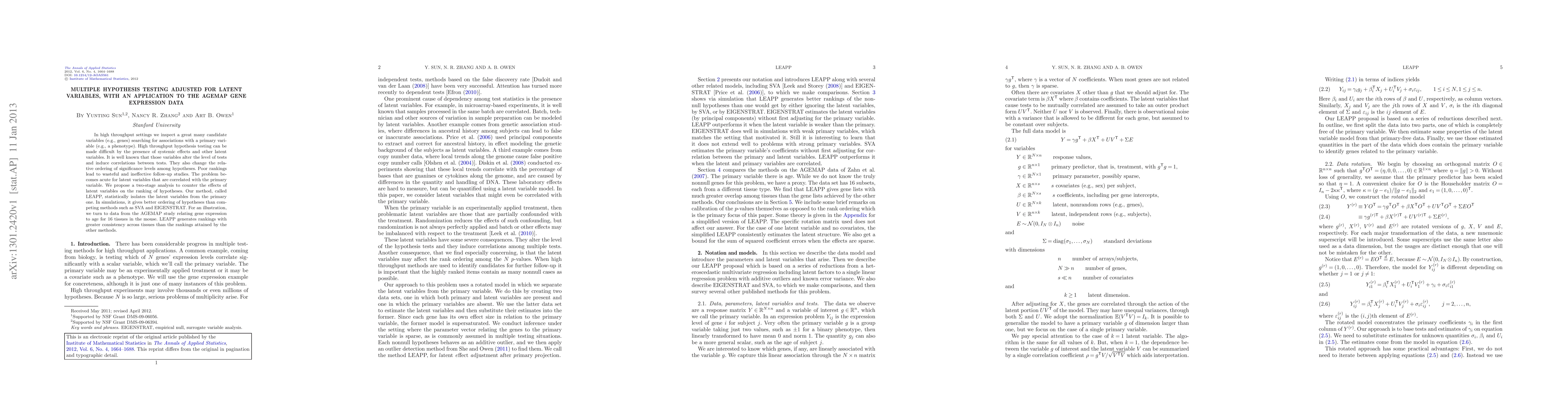 This paper proposes LEAPP, a two-stage analysis method to adjust for latent variables in high throughput hypothesis testing, improving the ranking of associations. LEAPP outperforms methods like SVA and EIGENSTRAT in simulations and shows better consistency in gene expression rankings across tissues in the AGEMAP study.
