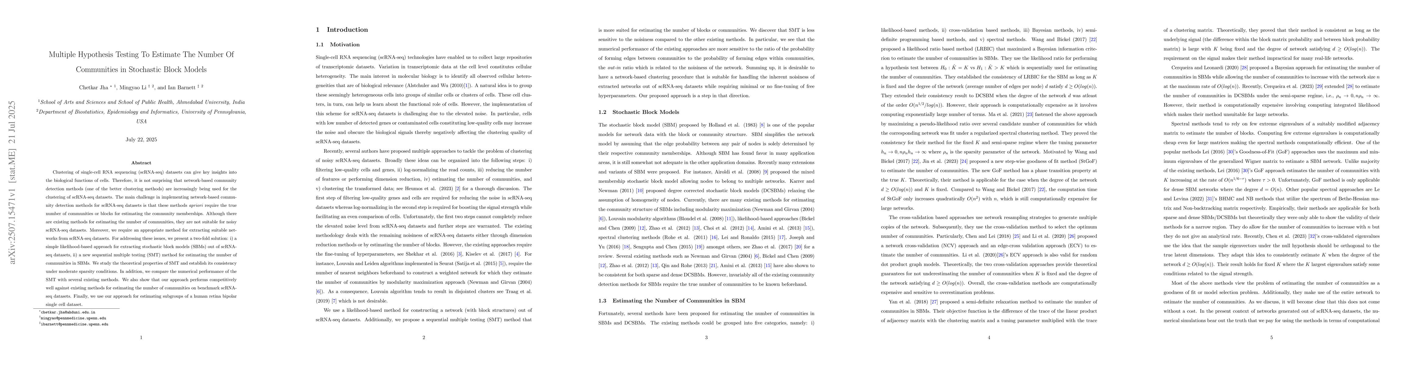 Clustering of single-cell RNA sequencing (scRNA-seq) datasets can give key insights into the biological functions of cells. Therefore, it is not surprising that network-based community detection methods (one of the better clustering methods) are increasingly being used for the clustering of scRNA-seq datasets. The main challenge in implementing network-based community detection methods for scRNA-seq datasets is that these methods \emph{apriori} require the true number of communities or blocks for estimating the community memberships. Although there are existing methods for estimating the number of communities, they are not suitable for noisy scRNA-seq datasets. Moreover, we require an appropriate method for extracting suitable networks from scRNA-seq datasets. For addressing these issues, we present a two-fold solution: i) a simple likelihood-based approach for extracting stochastic block models (SBMs) out of scRNA-seq datasets, ii) a new sequential multiple testing (SMT) method for estimating the number of communities in SBMs. We study the theoretical properties of SMT and establish its consistency under moderate sparsity conditions. In addition, we compare the numerical performance of the SMT with several existing methods. We also show that our approach performs competitively well against existing methods for estimating the number of communities on benchmark scRNA-seq datasets. Finally, we use our approach for estimating subgroups of a human retina bipolar single cell dataset.