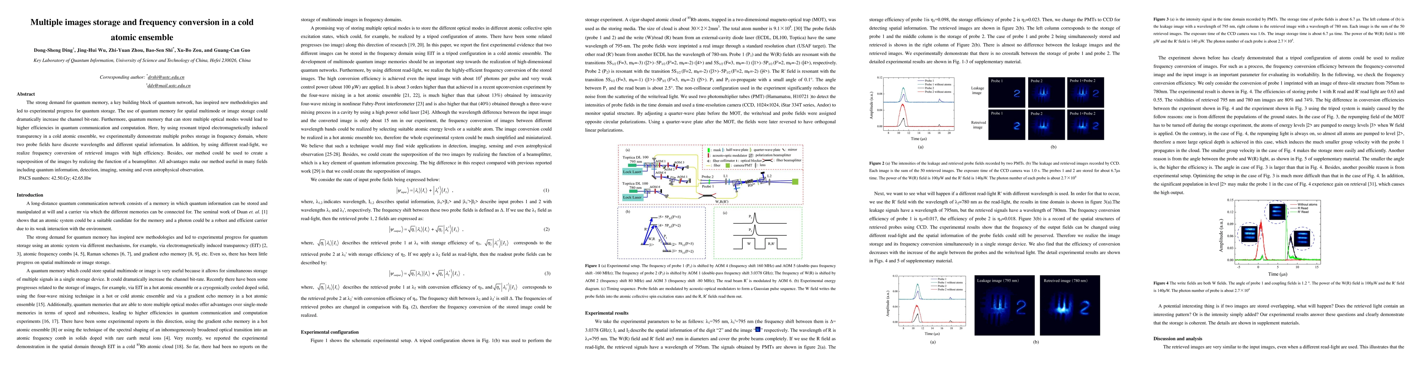 This paper demonstrates a method for storing multiple images in a cold atomic ensemble using resonant tripod electromagnetically induced transparency, achieving frequency conversion of retrieved images with high efficiency. The technique also enables superposition of images, potentially enhancing applications in quantum information, detection, imaging, sensing, and astrophysical observation.