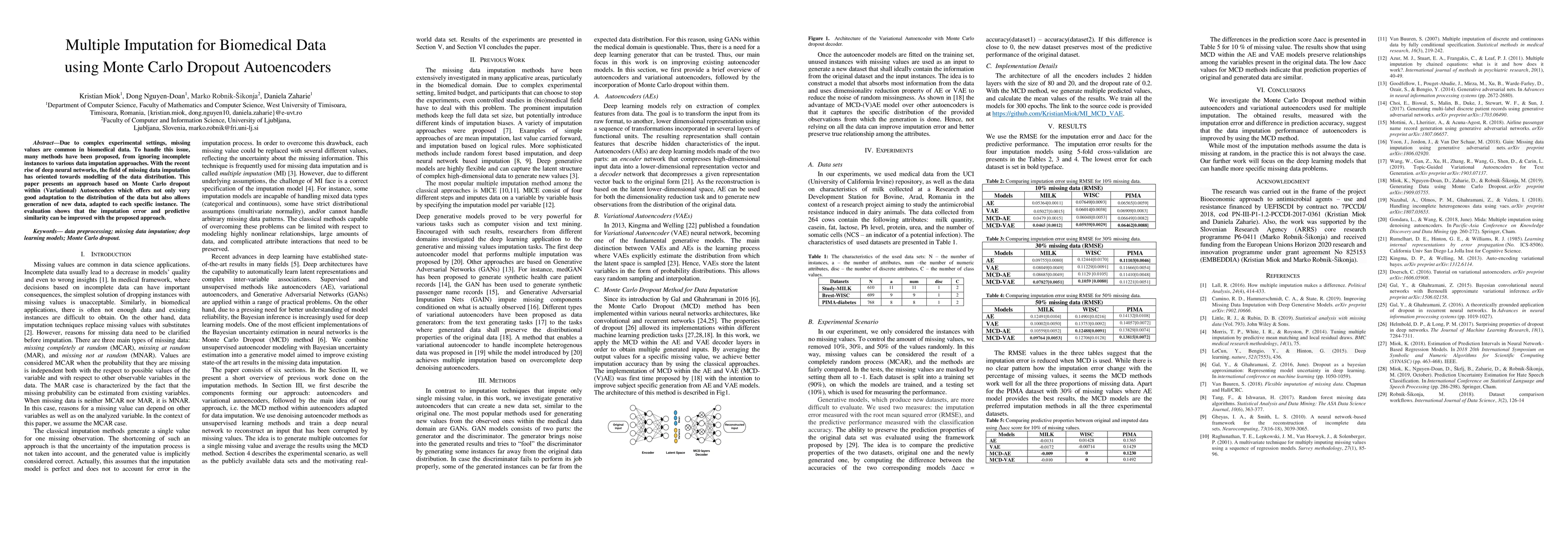 This paper proposes a method for handling missing values in biomedical data using Monte Carlo dropout within Variational Autoencoders, demonstrating improved imputation accuracy and predictive similarity compared to traditional methods.