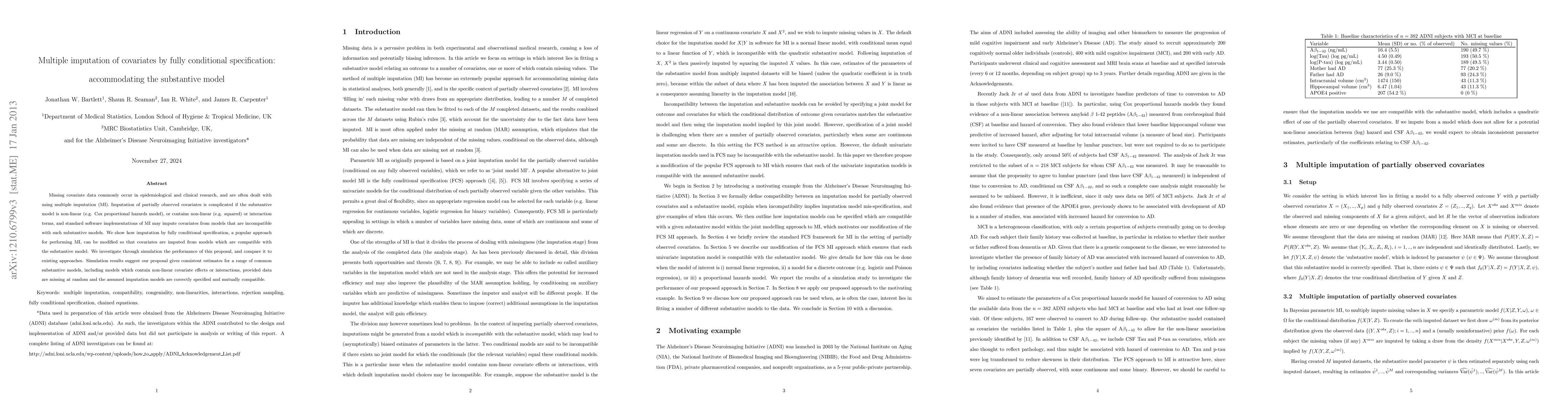 This paper proposes a modified fully conditional specification approach for multiple imputation of missing covariate data that aligns with the substantive model, especially when it includes non-linear terms or interactions. Simulation results indicate that this method provides consistent estimates, provided data are missing at random and the imputation models are correctly specified.
