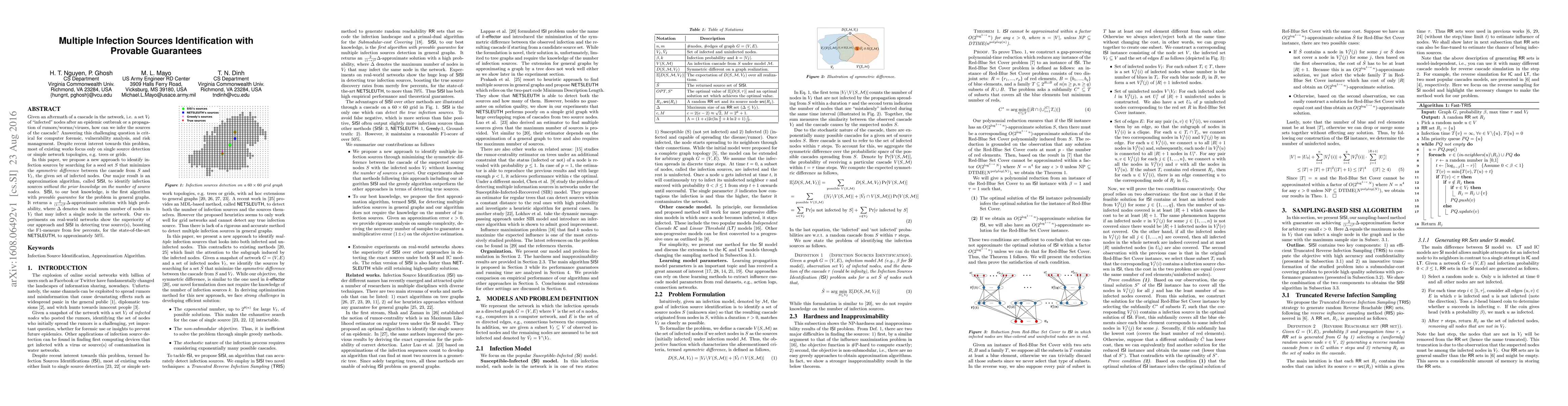 Given an aftermath of a cascade in the network, i.e. a set $V_I$ of "infected" nodes after an epidemic outbreak or a propagation of rumors/worms/viruses, how can we infer the sources of the cascade? Answering this challenging question is critical for computer forensic, vulnerability analysis, and risk management. Despite recent interest towards this problem, most of existing works focus only on single source detection or simple network topologies, e.g. trees or grids. In this paper, we propose a new approach to identify infection sources by searching for a seed set $S$ that minimizes the \emph{symmetric difference} between the cascade from $S$ and $V_I$, the given set of infected nodes. Our major result is an approximation algorithm, called SISI, to identify infection sources \emph{without the prior knowledge on the number of source nodes}. SISI, to our best knowledge, is the first algorithm with \emph{provable guarantee} for the problem in general graphs. It returns a $\frac{2}{(1-\epsilon)^2}\Delta$-approximate solution with high probability, where $\Delta$ denotes the maximum number of nodes in $V_I$ that may infect a single node in the network. Our experiments on real-world networks show the superiority of our approach and SISI in detecting true source(s), boosting the F1-measure from few percents, for the state-of-the-art NETSLEUTH, to approximately 50\%.