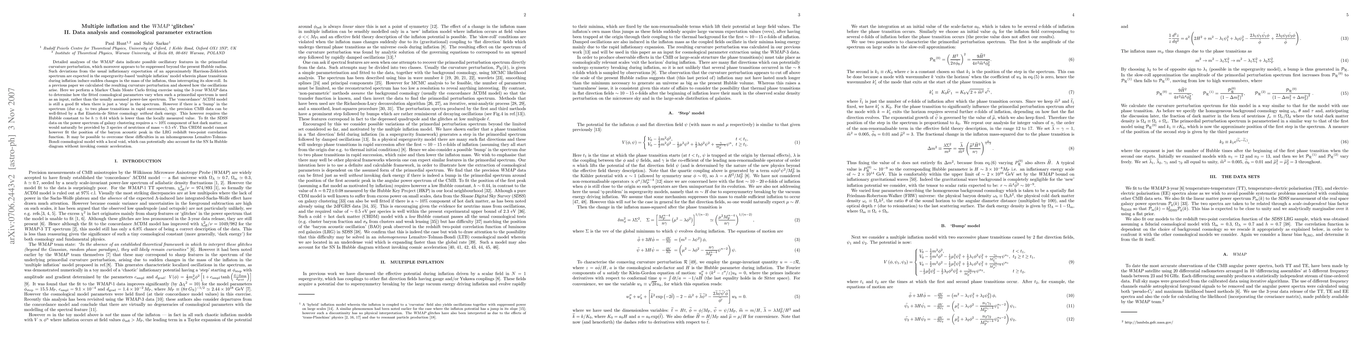 Detailed analyses of the WMAP data indicate possible oscillatory features in the primordial curvature perturbation, which moreover appears to be suppressed beyond the present Hubble radius. Such deviations from the usual inflationary expectation of an approximately Harrison-Zeldovich spectrum are expected in the supergravity-based 'multiple inflation' model wherein phase transitions during inflation induce sudden changes in the mass of the inflaton, thus interrupting its slow-roll. In a previous paper we calculated the resulting curvature perturbation and showed how the oscillations arise. Here we perform a Markov Chain Monte Carlo fitting exercise using the 3-year WMAP data to determine how the fitted cosmological parameters vary when such a primordial spectrum is used as an input, rather than the usually assumed power-law spectrum. The 'concordance' LCDM model is still a good fit when there is just a 'step' in the spectrum. However if there is a 'bump' in the spectrum (due e.g. to two phase transitions in rapid succession), the precision CMB data can be well-fitted by a flat Einstein-de Sitter cosmology without dark energy. This however requires the Hubble constant to be h ~ 0.44 which is lower than the locally measured value. To fit the SDSS data on the power spectrum of galaxy clustering requires a ~10% component of hot dark matter, as would naturally be provided by 3 species of neutrinos of mass ~0.5 eV. This CHDM model cannot however fit the position of the baryon acoustic peak in the LRG redshift two-point correlation function. It may be possible to overcome these difficulties in an inhomogeneous Lemaitre-Tolman-Bondi cosmological model with a local void, which can potentially also account for the SN Ia Hubble diagram without invoking cosmic acceleration.