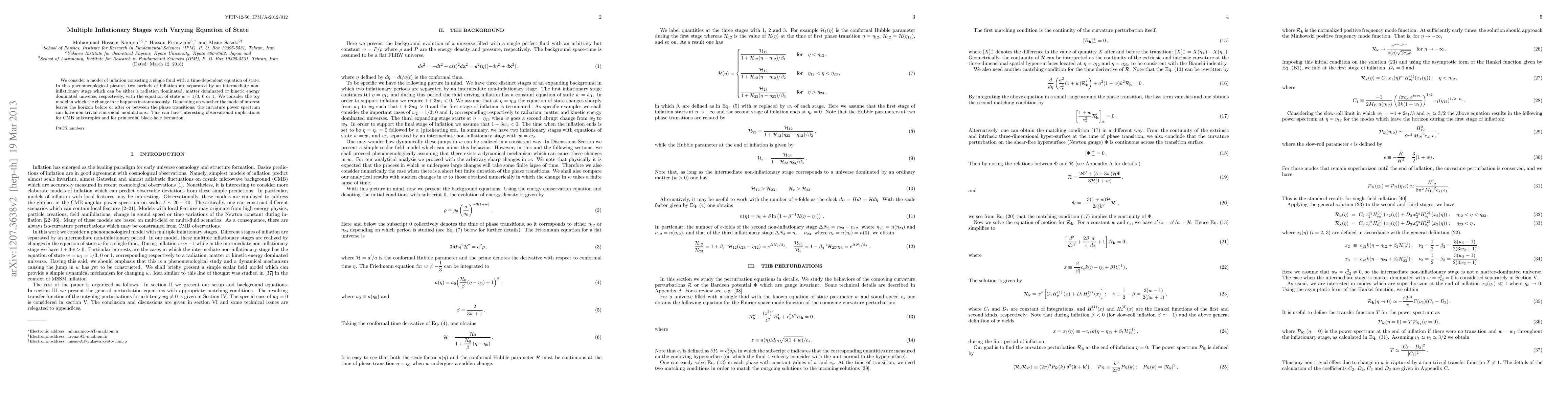 We consider a model of inflation consisting a single fluid with a time-dependent equation of state. In this phenomenological picture, two periods of inflation are separated by an intermediate non-inflationary stage which can be either a radiation dominated, matter dominated or kinetic energy dominated universe, respectively, with the equation of state $w=1/3$, 0 or 1. We consider the toy model in which the change in $w$ happens instantaneously. Depending on whether the mode of interest leaves the horizon before or after or between the phase transitions, the curvature power spectrum can have non-trivial sinusoidal modulations. This can have interesting observational implications for CMB anisotropies and for primordial black-hole formation.