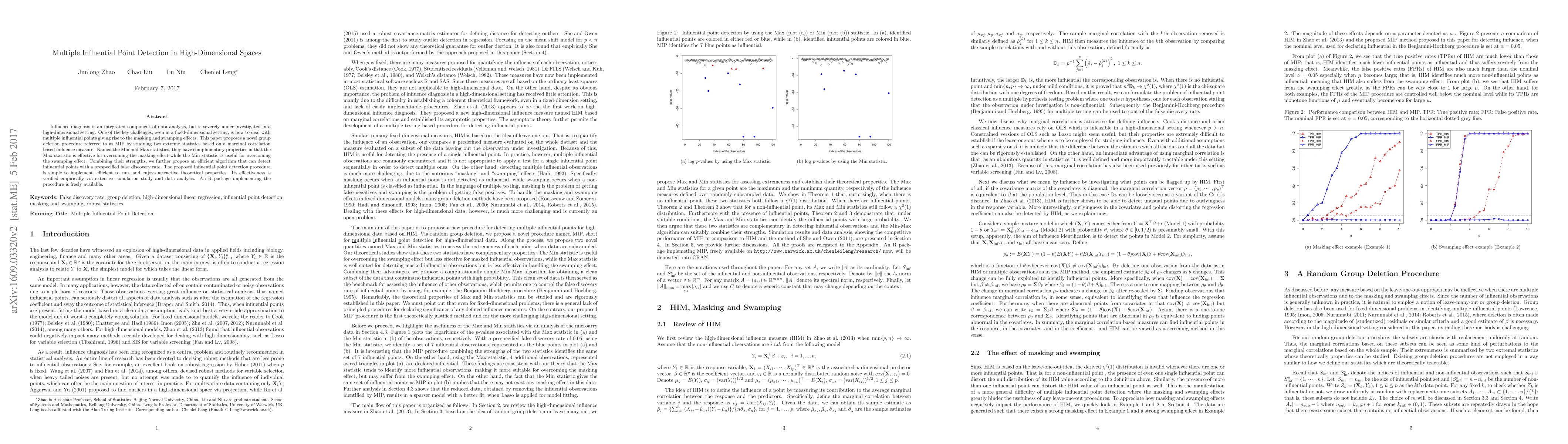 Researchers propose a novel method to detect multiple influential points in high-dimensional spaces using Max and Min statistics, which address masking and swamping effects, and offer an efficient algorithm with theoretical properties.