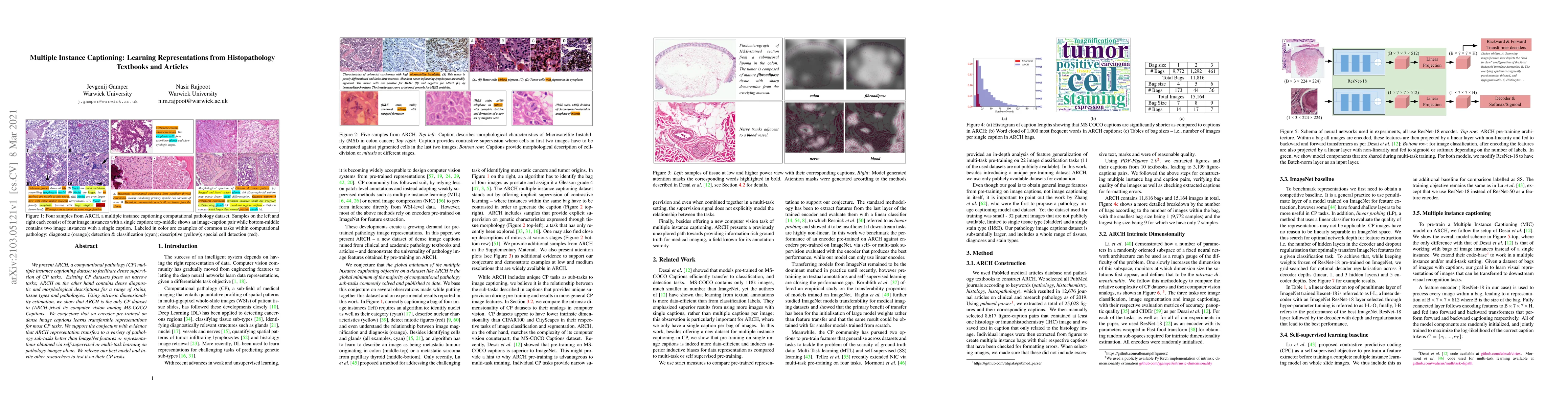 Researchers introduced ARCH, a dataset for multiple instance captioning in computational pathology, showing it rivals computer vision datasets like MS-COCO Captions in performance. Their model demonstrates transferable representations that excel at various pathology sub-tasks.
