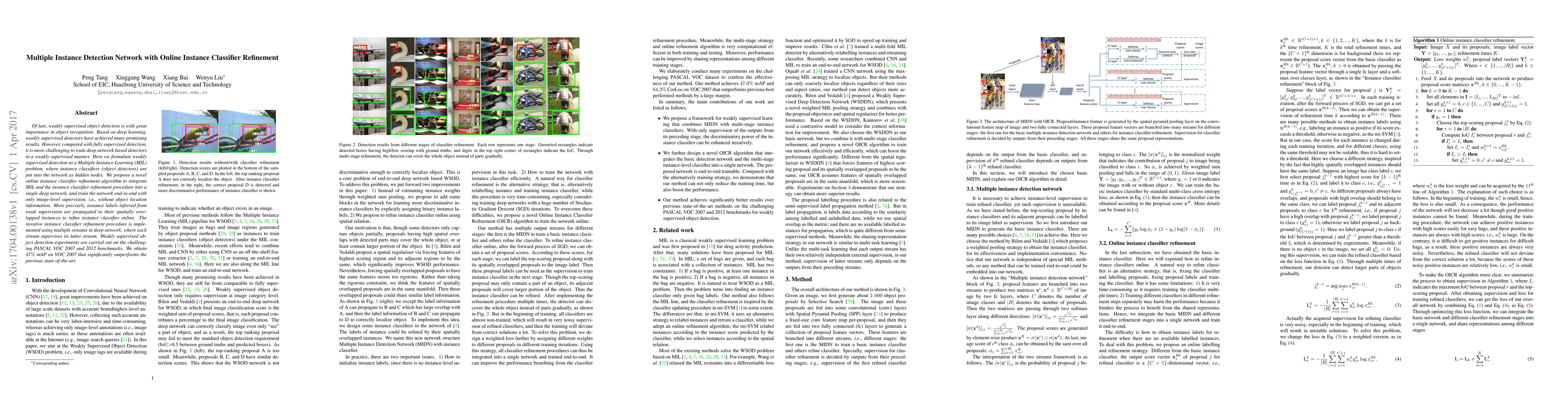 This paper proposes a novel Multiple Instance Detection Network with an online instance classifier refinement algorithm for weakly supervised object detection, achieving 47% mAP on PASCAL VOC 2007 and outperforming previous state-of-the-art methods. The network integrates Multiple Instance Learning and iterative refinement of instance classifiers using only image-level supervision.