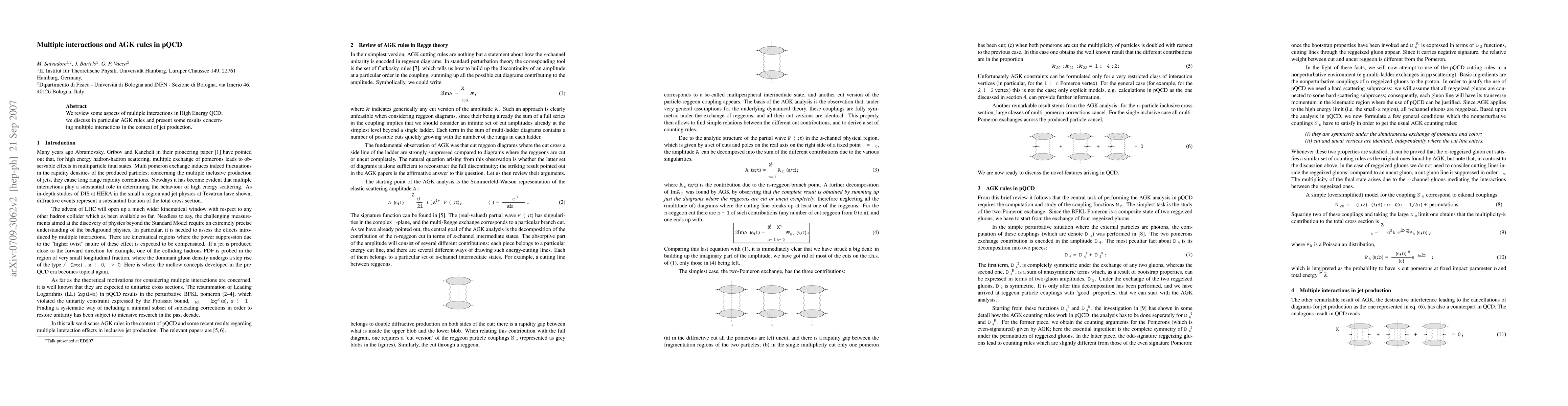 We review some aspects of multiple interactions in High Energy QCD; we discuss in particular AGK rules and present some results concerning multiple interactions in the context of jet production.