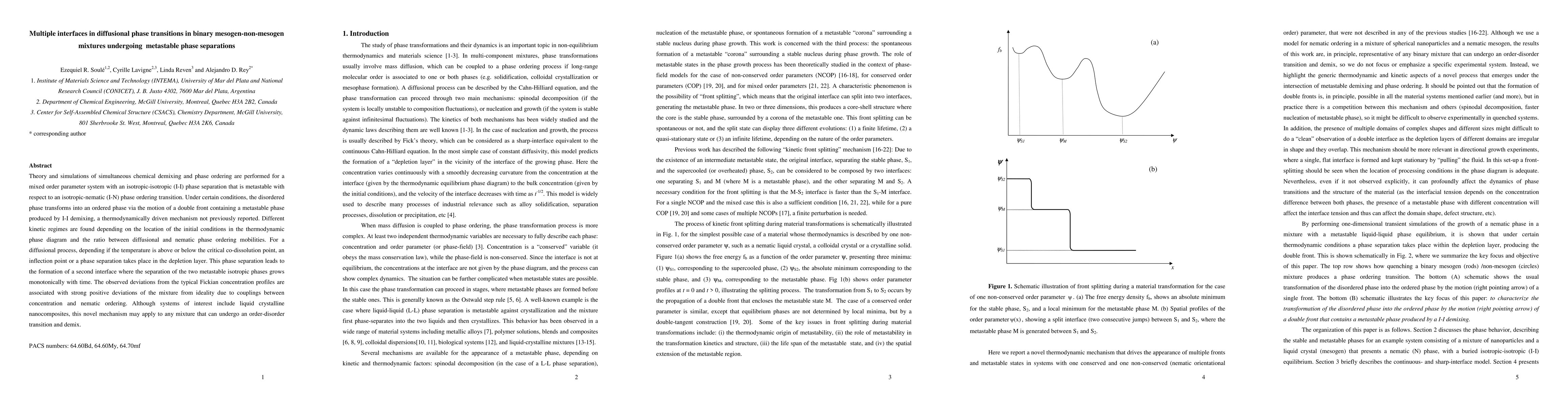 Theory and simulations of simultaneous chemical demixing and phase ordering are performed for a mixed order parameter system with an isotropic-isotropic (I-I) phase separation that is metastable with respect to an isotropic-nematic (I-N) phase ordering transition. Under certain conditions, the disordered phase transforms into an ordered phase via the motion of a double front containing a metastable phase produced by I-I demixing, a thermodynamically driven mechanism not previously reported. Different kinetic regimes are found depending on the location of the initial conditions in the thermodynamic phase diagram and the ratio between diffusional and nematic phase ordering mobilities. For a diffusional process, depending if the temperature is above or below the critical co-dissolution point, an inflection point or a phase separation takes place in the depletion layer. This phase separation leads to the formation of a second interface where the separation of the two metastable isotropic phases grows monotonically with time. The observed deviations from the typical Fickian concentration profiles are associated with strong positive deviations of the mixture from ideality due to couplings between concentration and nematic ordering. Although systems of interest include liquid crystalline nanocomposites, this novel mechanism may apply to any mixture that can undergo an order-disorder transition and demix.
