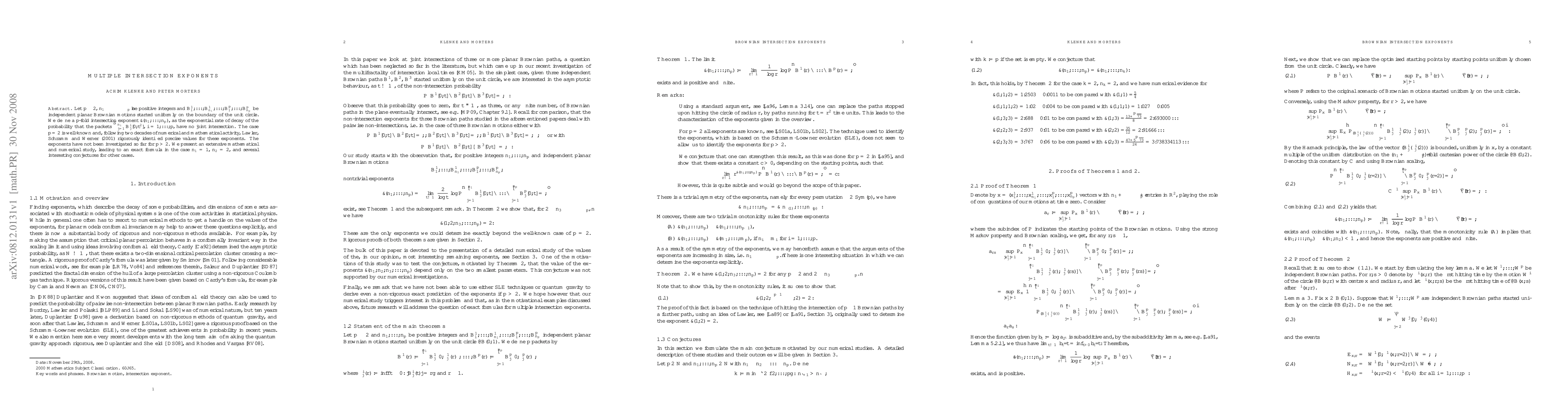 This paper investigates the exponential decay rates of joint intersection probabilities for multiple independent planar Brownian motions, focusing on a $p$-fold intersection exponent. For $p=2$, exact values have been established, but the study extends to $p>2$ with an exact formula for specific cases and several conjectures for others.