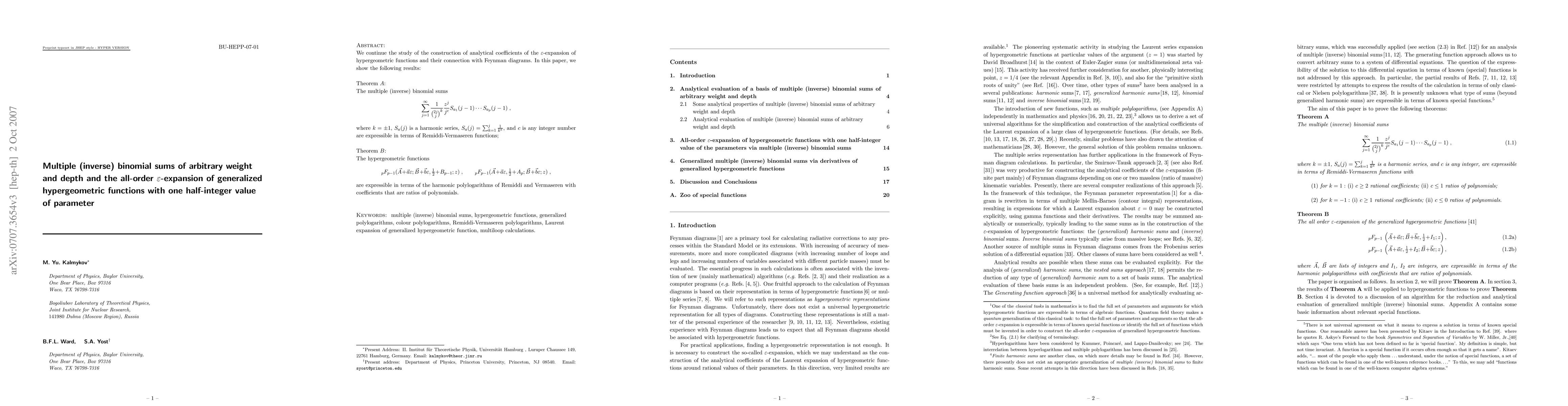 **Summary:** This paper establishes connections between multiple binomial sums and Remiddi-Vermaseren functions, and shows that the epsilon expansion of hypergeometric functions with half-integer parameters can be expressed using harmonic polylogarithms with polynomial coefficients.