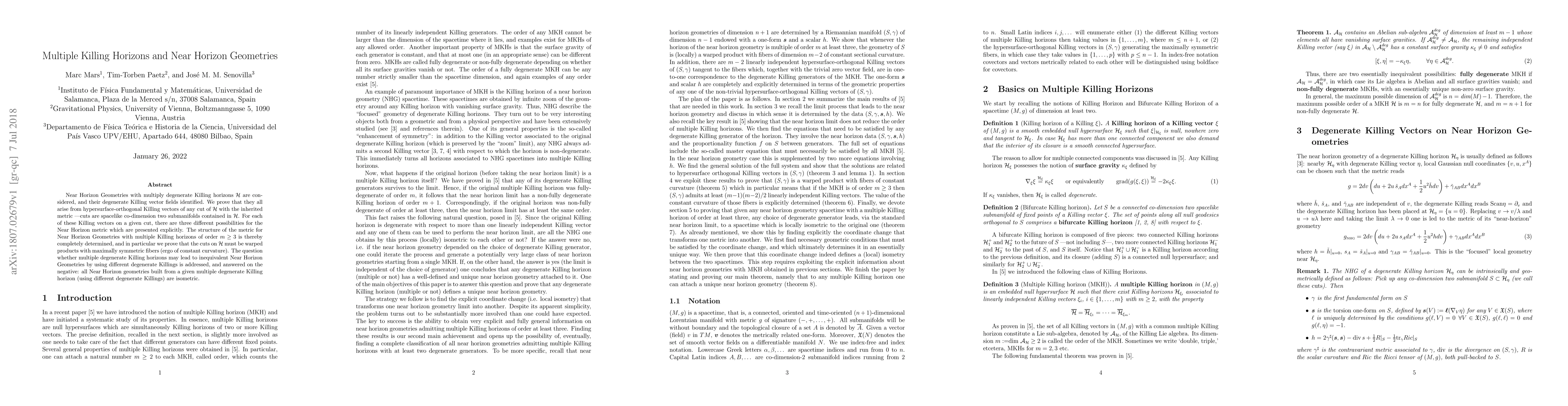 Near Horizon Geometries with multiply degenerate Killing horizons $\mathcal{H}$ are considered, and their degenerate Killing vector fields identified. We prove that they all arise from hypersurface-orthogonal Killing vectors of any cut of $\mathcal{H}$ with the inherited metric -- cuts are spacelike co-dimension two submanifolds contained in $\mathcal{H}$. For each of these Killing vectors on a given cut, there are three different possibilities for the Near Horizon metric which are presented explicitly. The structure of the metric for Near Horizon Geometries with multiple Killing horizons of order $m\geq 3$ is thereby completely determined, and in particular we prove that the cuts on $\mathcal{H}$ must be warped products with maximally symmetric fibers (ergo of constant curvature). The question whether multiple degenerate Killing horizons may lead to inequivalent Near Horizon Geometries by using different degenerate Killings is addressed, and answered on the negative: all Near Horizon geometries built from a given multiple degenerate Killing horizon (using different degenerate Killings) are isometric.