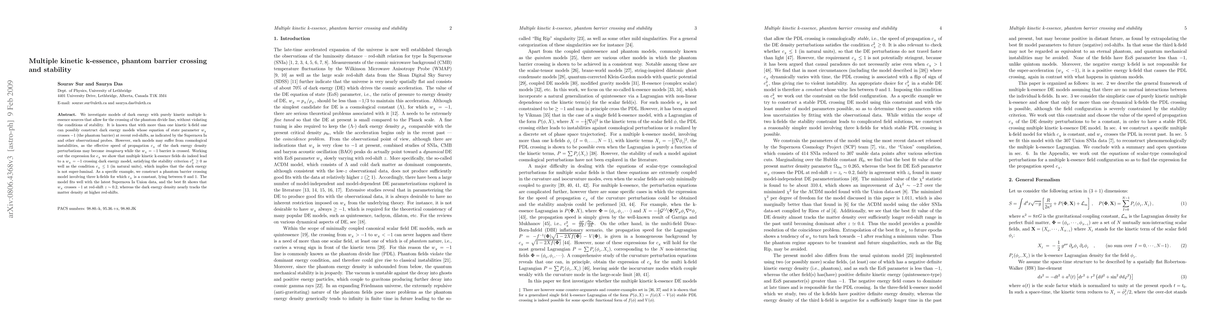 This paper explores dark energy models using multiple kinetic k-essence fields that cross the phantom divide without instability. It demonstrates that such models can satisfy the stability condition while crossing the equation of state parameter $\wx = -1$, fitting observational data from Supernova Ia and showing the dark energy density tracking matter density at higher redshifts.