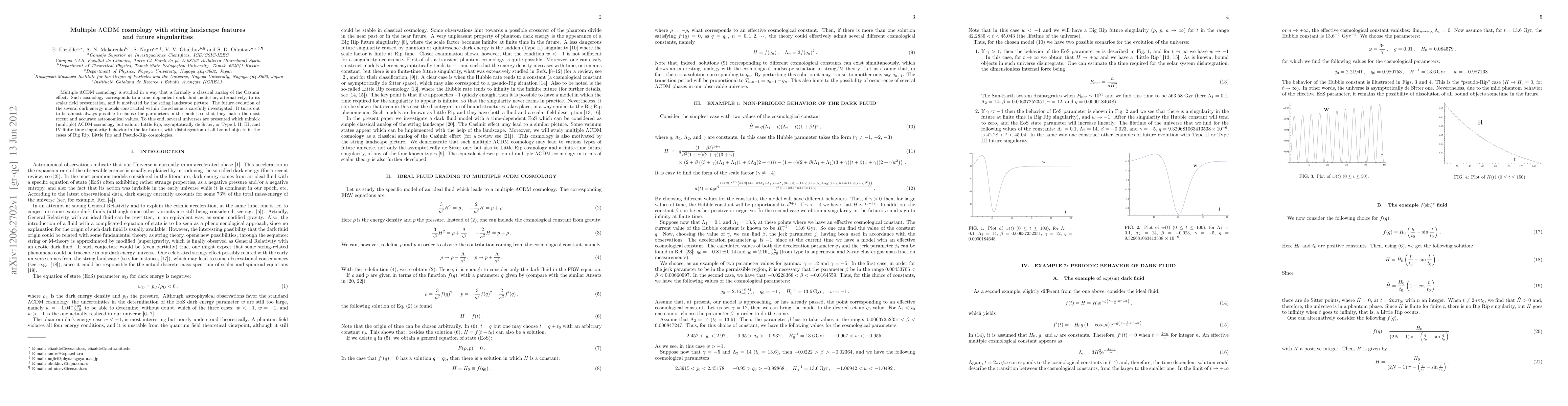 Multiple $\Lambda$CDM cosmology is studied in a way that is formally a classical analog of the Casimir effect. Such cosmology corresponds to a time-dependent dark fluid model or, alternatively, to its scalar field presentation, and it motivated by the string landscape picture. The future evolution of the several dark energy models constructed within the scheme is carefully investigated. It turns out to be almost always possible to choose the parameters in the models so that they match the most recent and accurate astronomical values. To this end, several universes are presented which mimick (multiple) $\Lambda$CDM cosmology but exhibit Little Rip, asymptotically de Sitter, or Type I, II, III, and IV finite-time singularity behavior in the far future, with disintegration of all bound objects in the cases of Big Rip, Little Rip and Pseudo-Rip cosmologies.