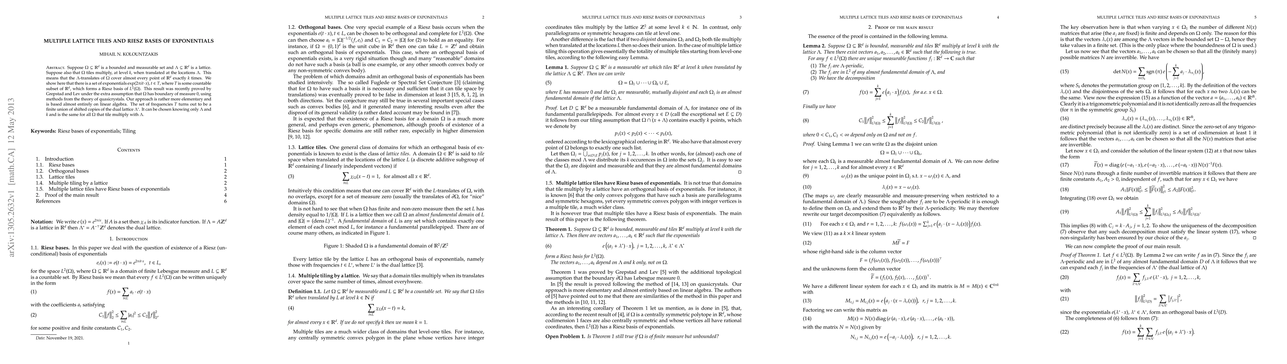 This paper demonstrates that a set of exponentials forms a Riesz basis for $L^2(\Omega)$ when $\Omega$ tiles multiply at level $k$ with a lattice $\Lambda$. The frequencies of these exponentials are derived from the dual lattice $\Lambda^*$, independent of $\Omega$'s boundary properties.