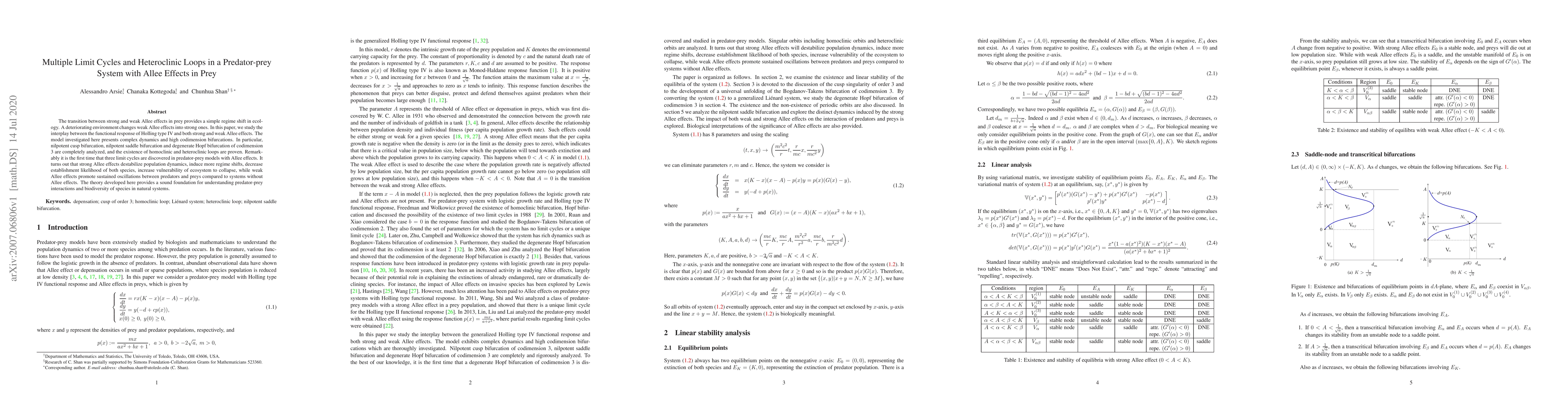 This paper investigates complex dynamics in a predator-prey model with Allee effects, revealing multiple limit cycles and heteroclinic loops. Strong Allee effects destabilize dynamics and increase ecosystem vulnerability, while weak Allee effects promote sustained oscillations.