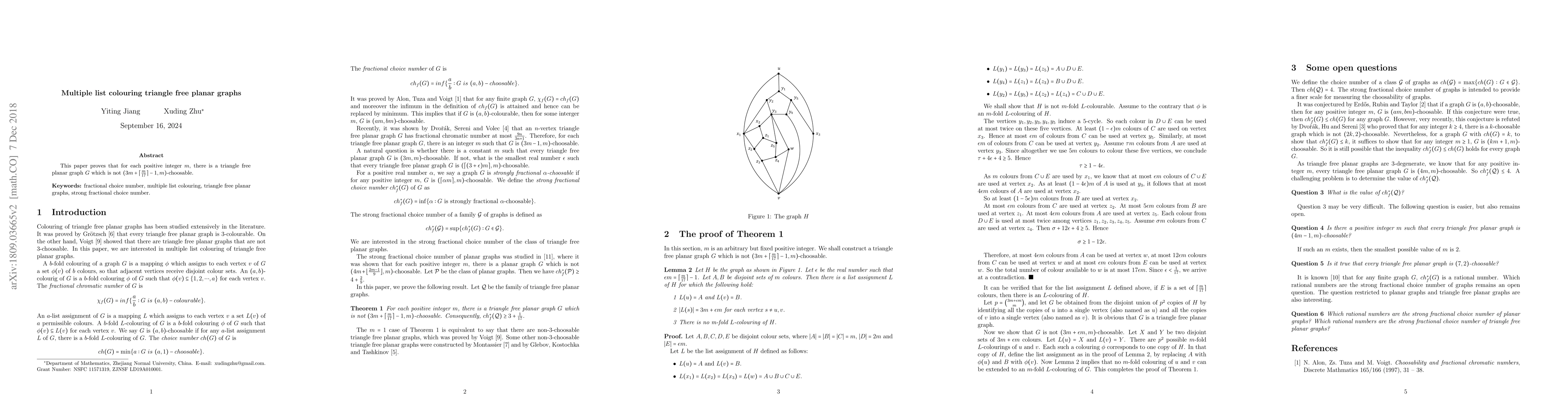 This research contributes to the understanding of graph coloring problems, specifically multiple list coloring of triangle-free planar graphs, which has applications in scheduling, map coloring, and register allocation.