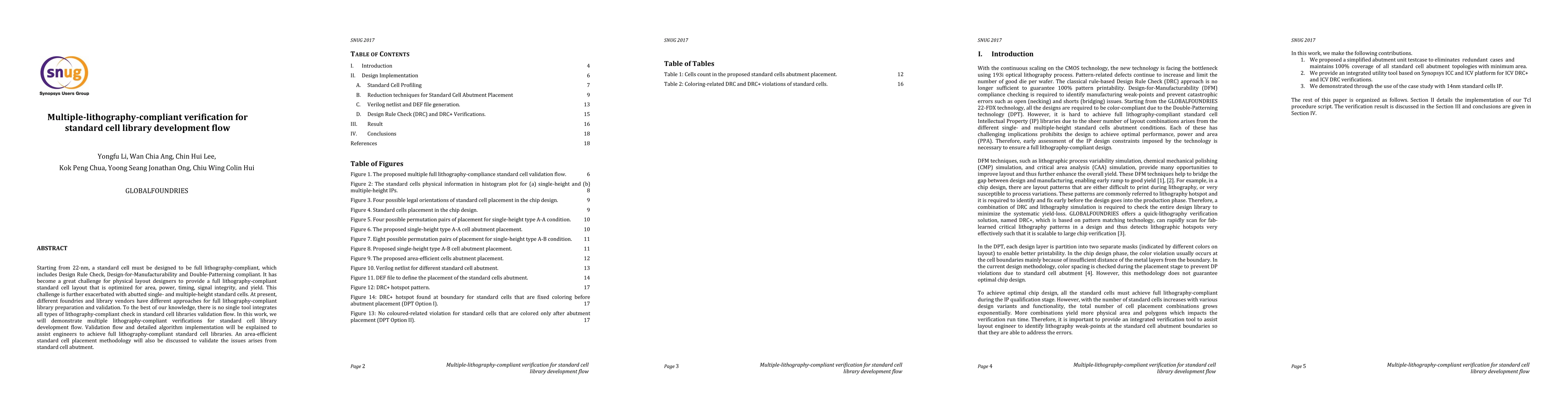 Starting from 22-nm, a standard cell must be designed to be full lithography-compliant, which includes Design Rule Check, Design-for-Manufacturability and Double-Patterning compliant. It has become a great challenge for physical layout designers to provide a full lithography-compliant standard cell layout that is optimized for area, power, timing, signal integrity, and yield. This challenge is further exacerbated with abutted single- and multiple-height standard cells. At present, different foundries and library vendors have different approaches for full lithography-compliant library preparation and validation. To the best of our knowledge, there is no single tool integrates all types of lithography-compliant check in standard cell libraries validation flow. In this work, we will demonstrate multiple lithography-compliant verification for standard cell library development flow. Validation flow and detailed algorithm implementation will be explained to assist engineers to achieve full lithography-compliant standard cell libraries. An area-efficient standard cell placement methodology will also be discussed to validate the issues arises from standard cell abutment.