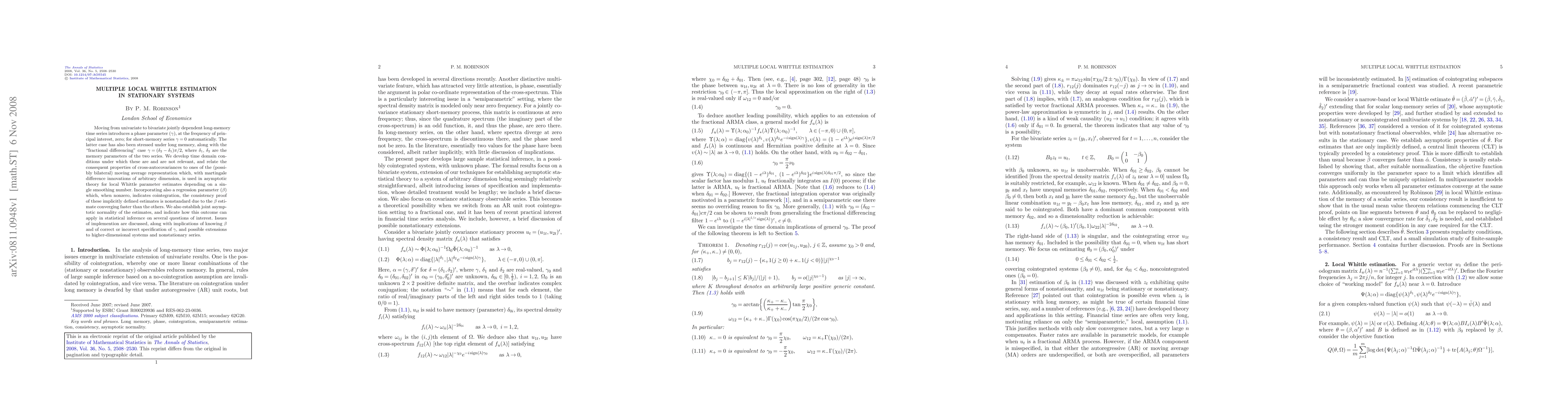 Moving from univariate to bivariate jointly dependent long-memory time series introduces a phase parameter $(\gamma)$, at the frequency of principal interest, zero; for short-memory series $\gamma=0$ automatically. The latter case has also been stressed under long memory, along with the ``fractional differencing'' case $\gamma=(\delta_2-\delta_1)\pi /2$, where $\delta_1$, $\delta_2$ are the memory parameters of the two series. We develop time domain conditions under which these are and are not relevant, and relate the consequent properties of cross-autocovariances to ones of the (possibly bilateral) moving average representation which, with martingale difference innovations of arbitrary dimension, is used in asymptotic theory for local Whittle parameter estimates depending on a single smoothing number. Incorporating also a regression parameter $(\beta)$ which, when nonzero, indicates cointegration, the consistency proof of these implicitly defined estimates is nonstandard due to the $\beta$ estimate converging faster than the others. We also establish joint asymptotic normality of the estimates, and indicate how this outcome can apply in statistical inference on several questions of interest. Issues of implemention are discussed, along with implications of knowing $\beta$ and of correct or incorrect specification of $\gamma$, and possible extensions to higher-dimensional systems and nonstationary series.