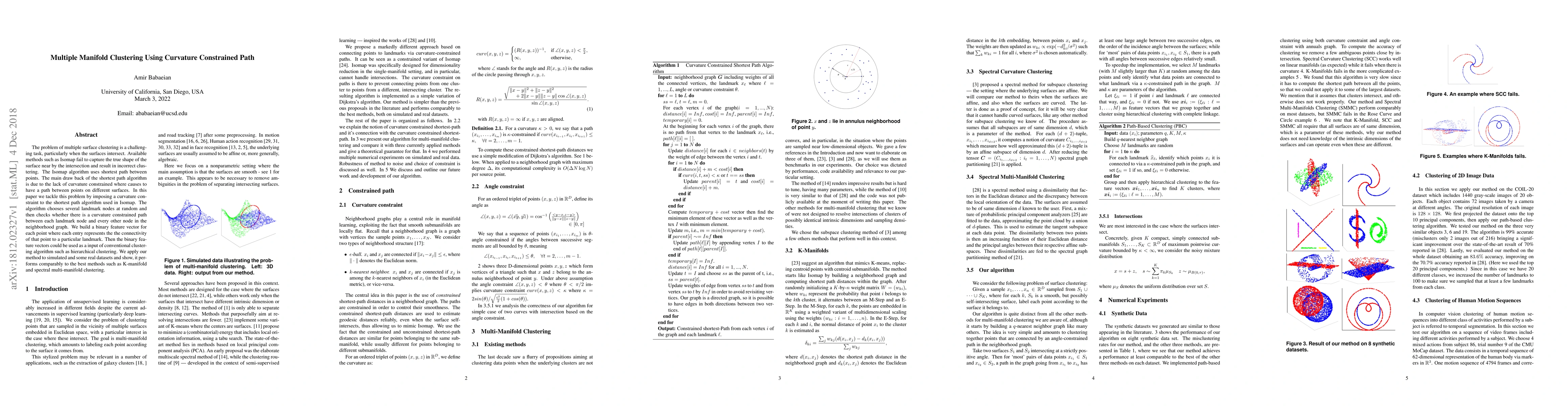 This paper proposes a new method for multiple surface clustering by incorporating curvature constraints into the shortest path algorithm used in Isomap. The method identifies landmark nodes and constructs binary feature vectors based on connectivity, which are then clustered using conventional algorithms, demonstrating comparable performance to leading methods.