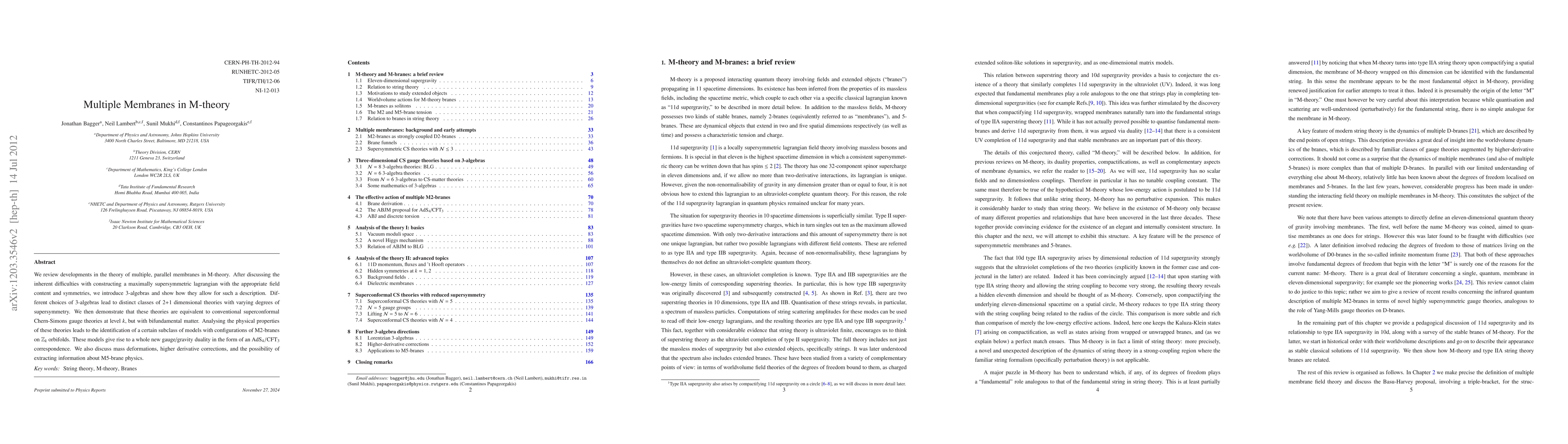 The research employs a comprehensive review of M-theory, focusing on multiple, parallel membranes and their descriptions through 3-algebras. It establishes equivalences between distinct 2+1 dimensional theories and conventional superconformal Chern-Simons gauge theories coupled to bifundamental matter.