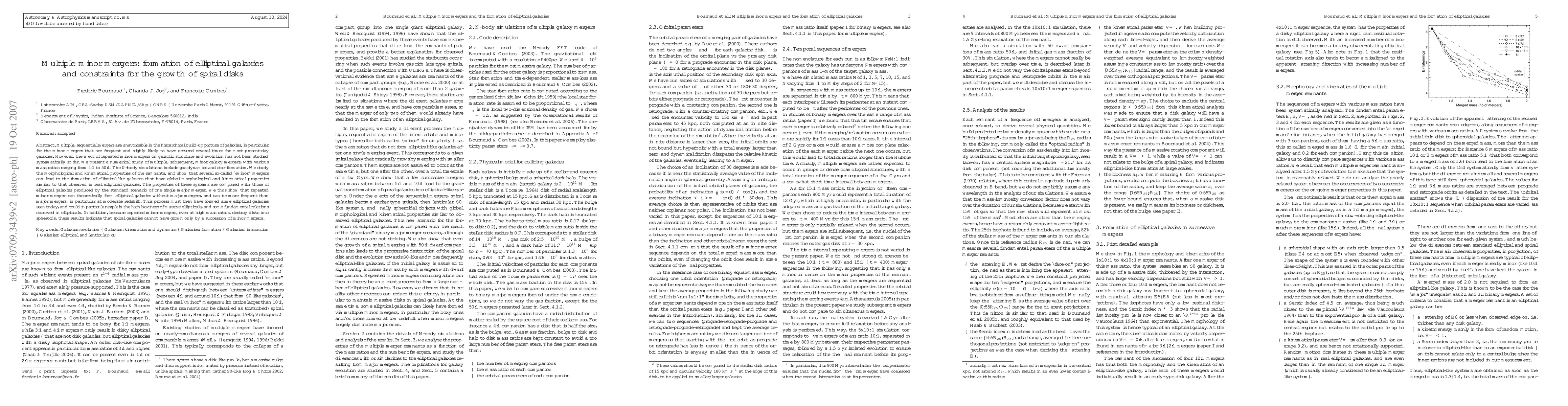 This paper presents a numerical study on the formation of elliptical galaxies through multiple minor galaxy mergers, showing that such mergers can create elliptical-like structures without the need for a single major merger. It also concludes that repeated minor mergers can destroy spiral disks, implying that spiral galaxies cannot solely grow through minor mergers.