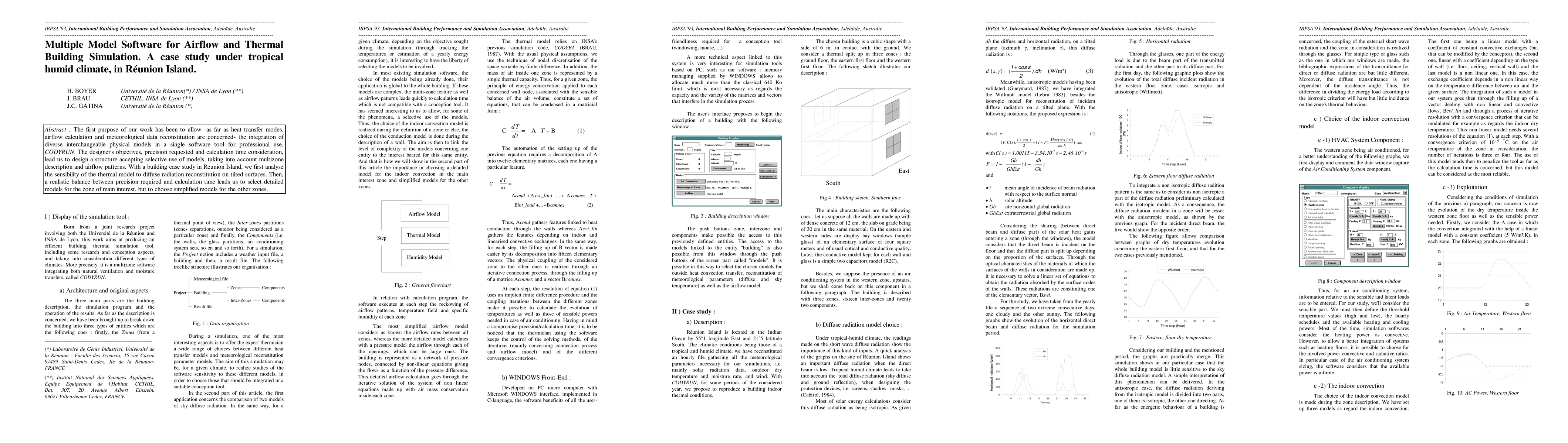 The first purpose of our work has been to allow -as far as heat transfer modes, airflow calculation and meteorological data reconstitution are concerned- the integration of diverse interchangeable physical models in a single software tool for professional use, CODYRUN. The designer's objectives, precision requested and calculation time consideration, lead us to design a structure accepting selective use of models, taking into account multizone description and airflow patterns. With a building case study in Reunion Island, we first analyse the sensibility of the thermal model to diffuse radiation reconstitution on tilted surfaces. Then, a realistic balance between precision required and calculation time leads us to select detailed models for the zone of main interest, but to choose simplified models for the other zones.