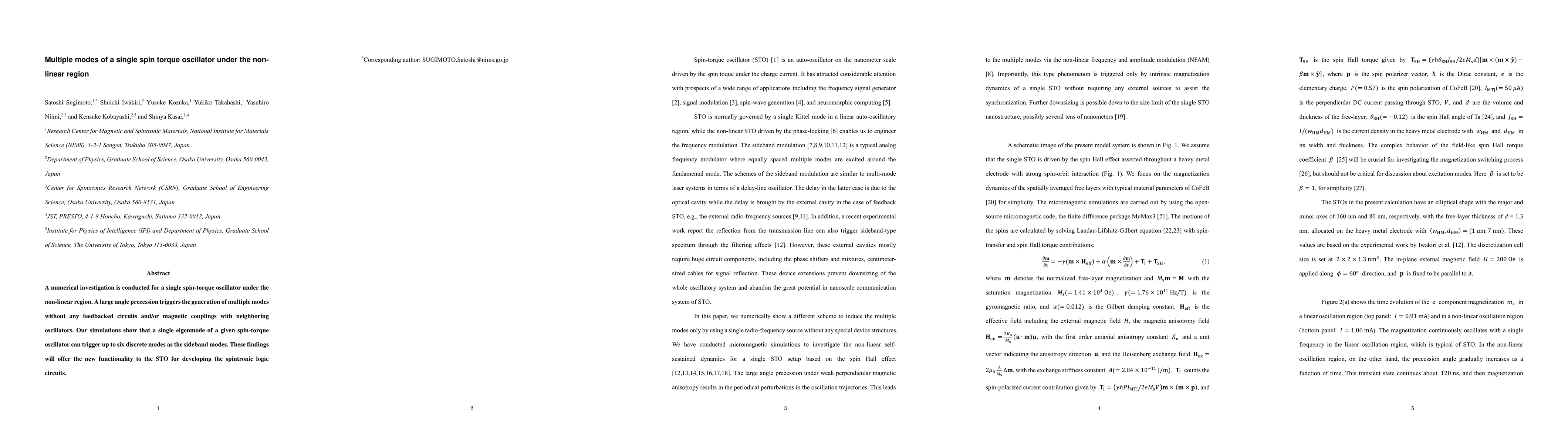 A numerical investigation is conducted for a single spin-torque oscillator under the non-linear region. A large angle precession triggers the generation of multiple modes without any feedbacked circuits and/or magnetic couplings with neighboring oscillators. Our simulations show that a single eigenmode of a given spin-torque oscillator can trigger up to six discrete modes as the sideband modes. These findings will offer the new functionality to the STO for developing the spintronic logic circuits.