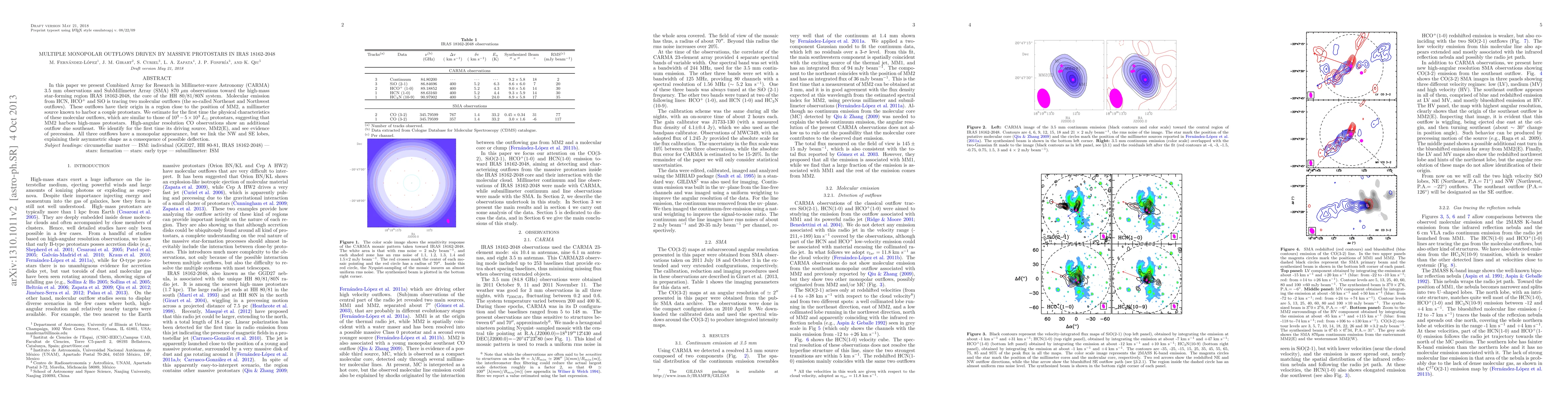 In this paper we present Combined Array for Research in Millimeter-wave Astronomy (CARMA) 3.5 mm observations and SubMillimeter Array (SMA) 870 microns observations toward the high-mass star-forming region IRAS 1816-2048, the core of the HH 80/81/80N system. Molecular emission from HCN, HCO+ and SiO is tracing two molecular outflows (the so-called Northeast and Northwest outflows). These outflows have their origin in a region close to the position of MM2, a millimeter source known to harbor a couple protostars. We estimate for the first time the physical characteristics of these molecular outflows, which are similar to those of 1000-5000 Lo protostars, suggesting that MM2 harbors high-mass protostars. High-angular resolution CO observations show an additional outflow due southeast. We identify for the first time its driving source, MM2(E), and see evidence of precession. All three outflows have a monopolar appearance, but we link the NW and SE lobes, explaining their asymmetric shape as a consequence of possible deflection.