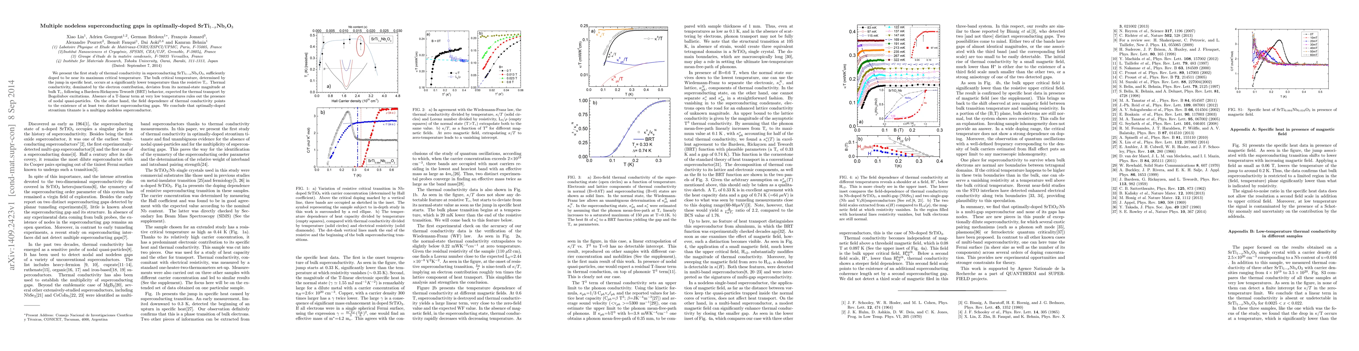 Researchers found that optimally-doped strontium titanate is a multigap nodeless superconductor with two distinct superconducting gaps, as indicated by thermal conductivity measurements that deviate from normal-state magnitude at bulk critical temperature.