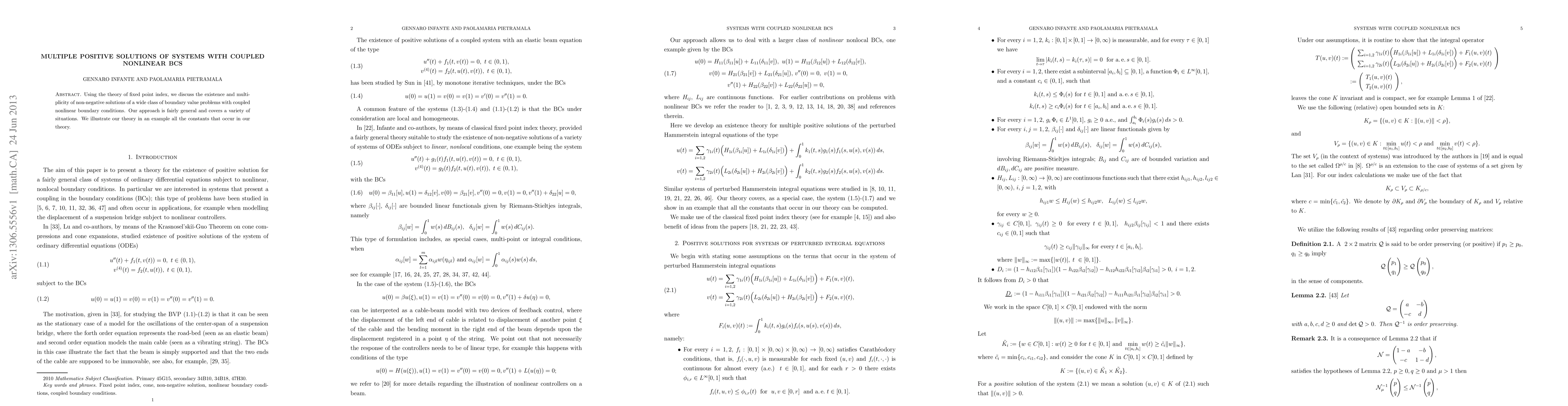 Using the theory of fixed point index, we discuss the existence and multiplicity of non-negative solutions of a wide class of boundary value problems with coupled nonlinear boundary conditions. Our approach is fairly general and covers a variety of situations. We illustrate our theory in an example all the constants that occur in our theory.