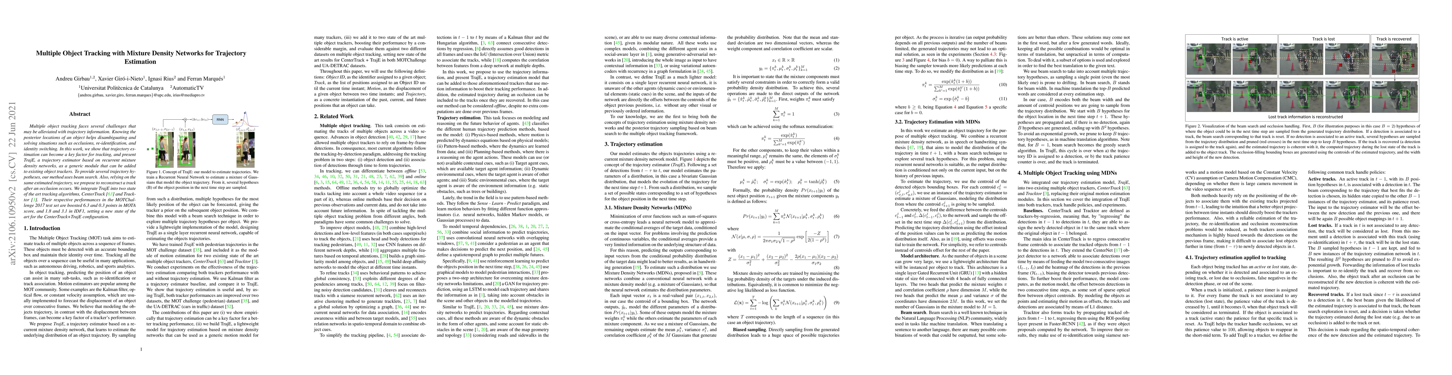 This research introduces TrajE, a trajectory estimator using recurrent mixture density networks to enhance multiple object tracking by generating multiple trajectory hypotheses via beam search. Integrated into CenterTrack and Tracktor, TrajE improves performance on the MOTChallenge 2017, achieving significant gains in MOTA and IDF1 scores, especially when combined with CenterTrack.