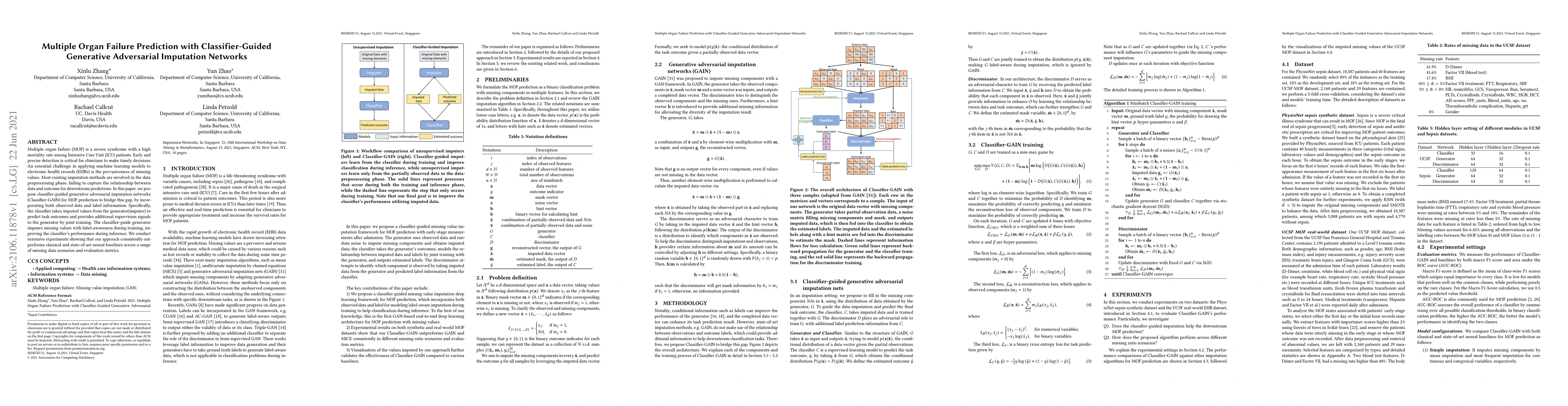 This paper proposes Classifier-GAIN, a novel classifier-guided generative adversarial imputation network for predicting multiple organ failure in ICU patients, addressing the challenge of missing values in electronic health records. The method outperforms existing models by incorporating both observed data and label information during imputation, leading to better prediction performance.